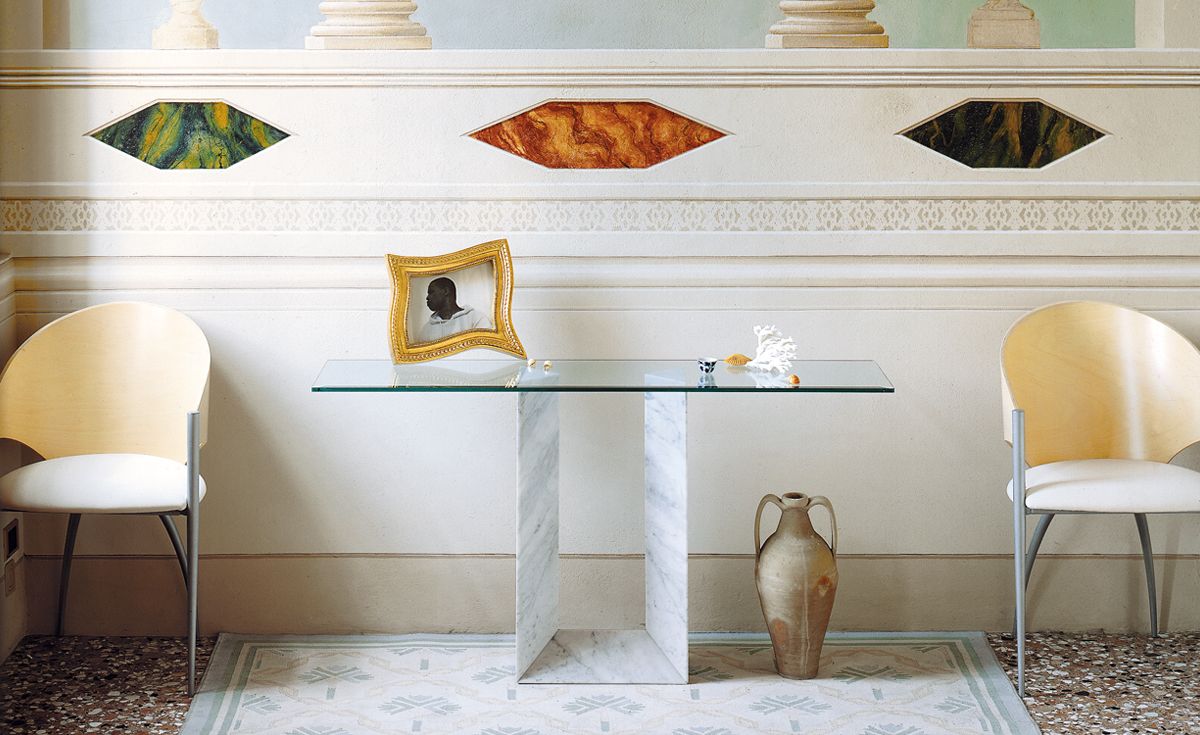 Современная консоль Diapason и одноименный стеклянный стол - хранители истории и стиля Cattelan Italia. Задуманные в 1986 году, они являются одними из самых долгоживущих проектов и до сих пор пользуются большим международным успехом. Они являются выражением изысканного дизайна, основанного на высококачественных материалах и итальянском мастерстве. База этой дизайнерской консоли и современного стола изготовлена из мрамора, и оценить его красоту в общем возможно благодаря ценной стеклянной столешнице. Линия Diapason идеально подходит для оформления дизайнерской гостиной или прихожей с элегантностью и, одновременно, современностью.