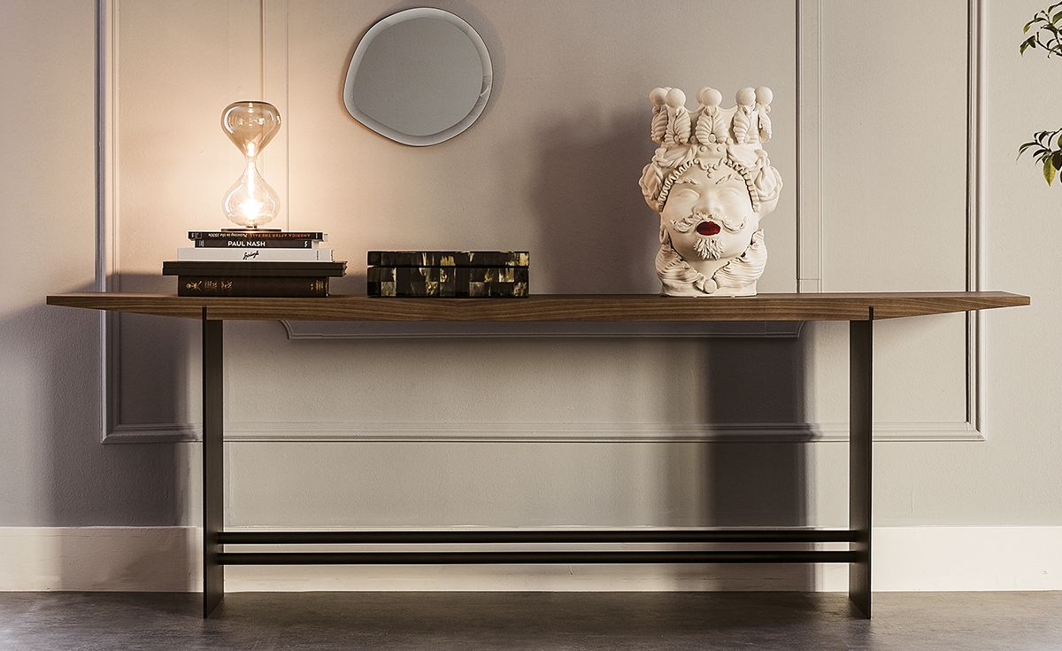 Идеальна в качестве обстановки для прихожей, дизайнерская консоль Trevi является функциональной мебелью, которая подходит для разнообразного использования пространства и удовлетворения разнообразных жилищных потребностей. С точки зрения стиля Trevi отличает особый дизайн, качество и широкий выбор исходного материала. Эта современная деревянная консоль отличается изысканной формой столешницы разной толщины, поддерживаемой окрашенным стальным основанием, гладкая промышленная поверхность которого создает приятный контраст с естественной текстурой дерева.