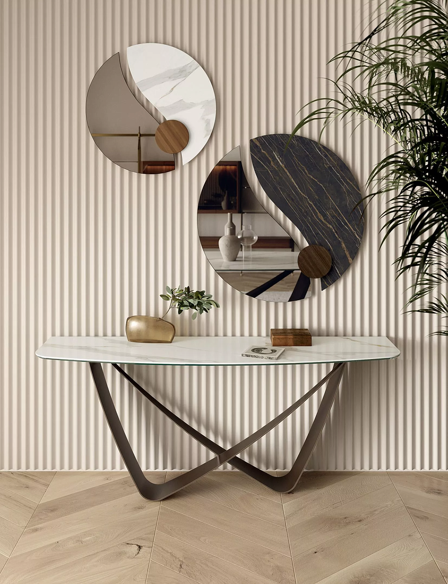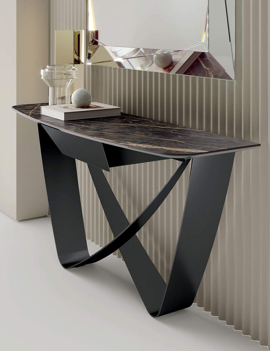 Bontempi BACH 06.43 — прямоугольный консольный столик с центральной опорой, предназначенный для гостиных. Он имеет лакированный металлический каркас и столешницу из шпона или супермрамора. Дизайн представляет собой элегантное сочетание двух переплетающихся фигурных элементов. Этот столик входит в коллекцию Bach от Bontempi.