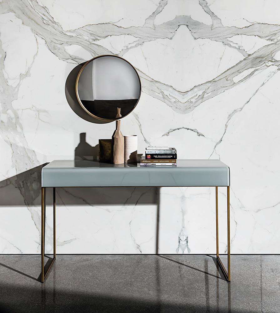 Модель: consol-Bonaldo-FLAME-160-Burnished-metal/glossy-calacatta-marble-top)