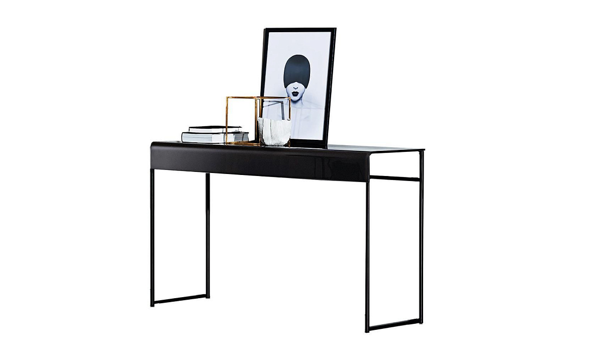 Консоль с металлическим каркасом, различные варианты отделки. Столешница из лакированного гнутого стекла, различные цвета.