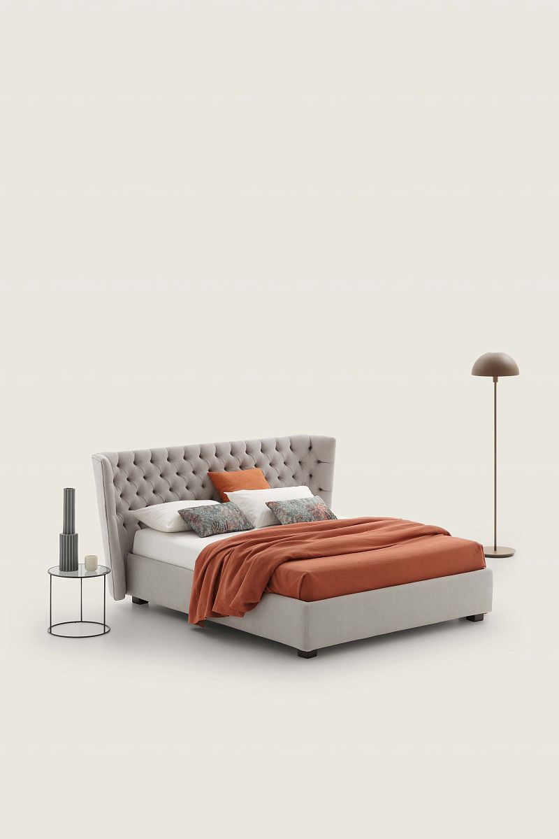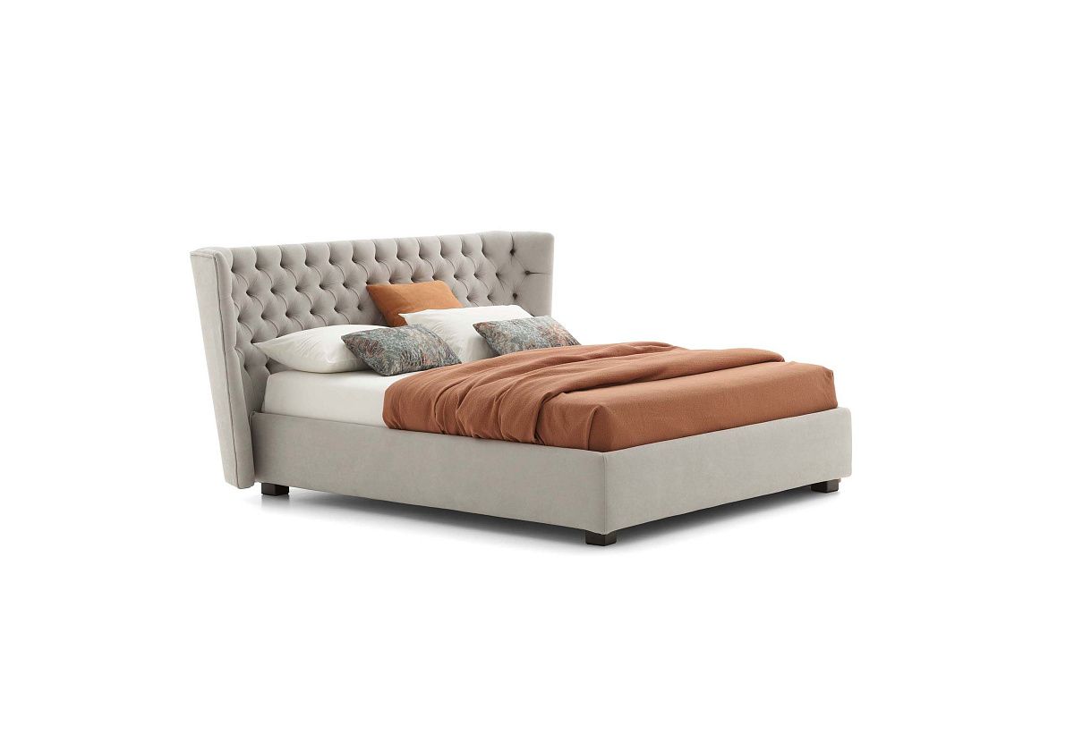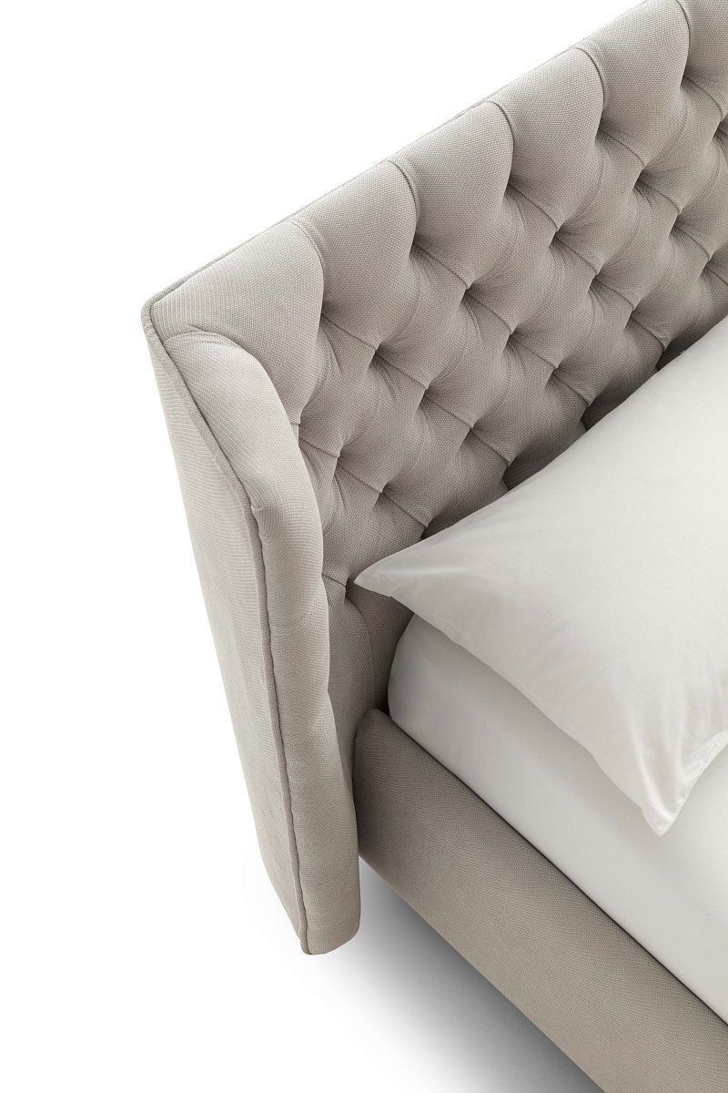 Кровать в классическом стиле с раскладным изголовьем и пуговицами.