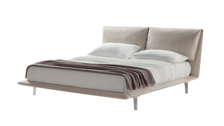 Изголовье кровати John-John изготовлено из массива бука и тополя с наполнителем из МДФ и наполнителем из пенополиуретана. Подушки набиты гусиным пухом и полиэстеровой ватой и закреплены на каркасе кожаной обивкой Pelle Frau®. Каркас кровати изготовлен из массива бука и тополя с наполнителем из пенополиуретана и предназначен для установки специальной спальной поверхности, состоящей из ряда буковых реек, закрепленных на центральной перекладине. Комплект реек Poltrona Frau® доступен в двух вариантах: жестком или с регулируемой поддержкой поясницы. Ножки изготовлены из алюминия с рутениевым покрытием. Кровать John-John обтянута кожей Pelle Frau®.