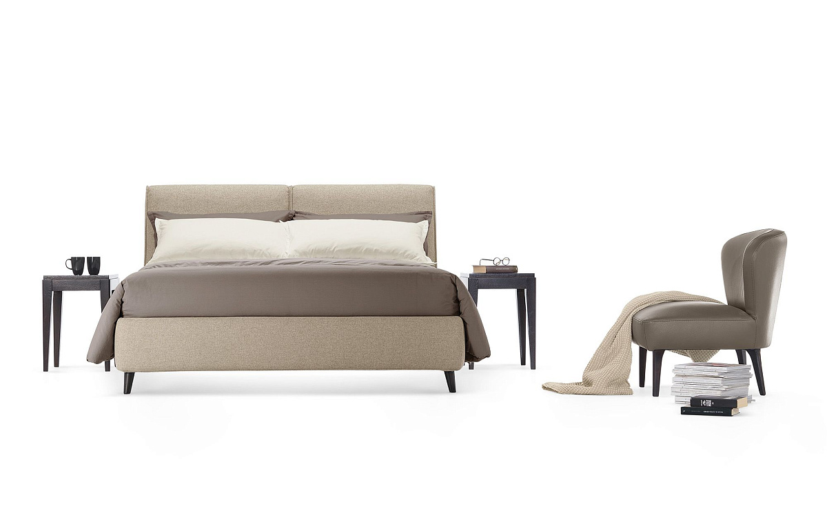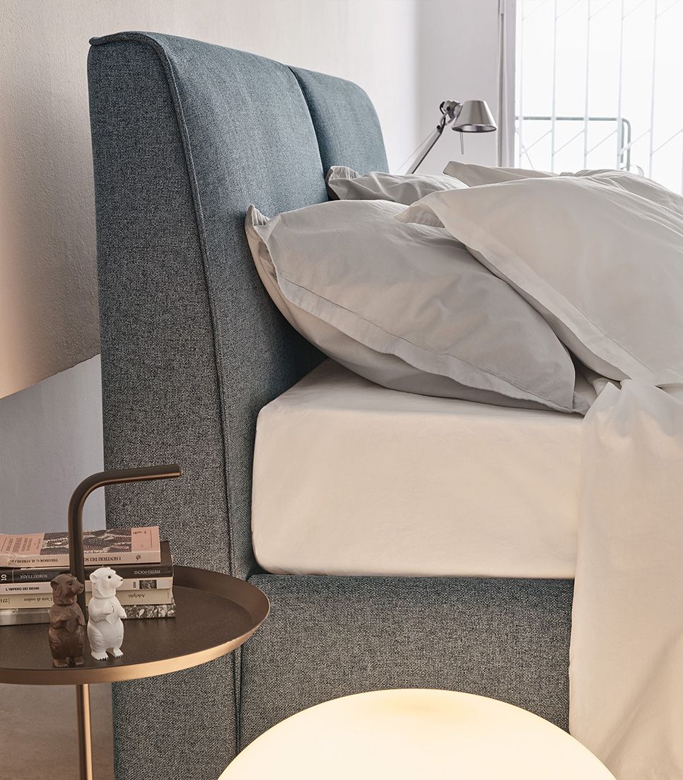 Особая мягкость округлых форм кровати придаёт ей лаконичность. Эта уютная кровать с современными нотками подходит для любого стиля. Для модели дополнительно можно заказать подъемный механизм нескольких видов. Контейнер-коробка — идеальное решение для тех, кто хочет сэкономить место и держать всё под рукой. Его вместительность позволяет оптимально разместить все вещи. Простой и безопасный подъём матраса — обязательное условие для максимально эффективного использования этого практичного пространства. ПОДЪЕМНАЯ СИСТЕМА YPSILON: Эта система поднимает основание и матрас по диагонали, обеспечивая угол раскрытия от 35 до 45 градусов. ТРИПЛЕКСНАЯ ПОДЪЕМНАЯ СИСТЕМА: Эта система сдвигает основание кровати горизонтально, обеспечивая доступ к контейнеру-коробке, в котором подушки и простыни хранятся аккуратно, а также позволяет заправлять кровать, не наклоняясь. ГЛАВНАЯ ПОДЪЕМНАЯ СИСТЕМА: Двойной подъемный механизм ограничивает движение основания кровати только по ее периметру, что обеспечивает значительную экономию пространства и гарантирует все преимущества горизонтального открывания. Контейнер-ящик оснащен съемными панелями, которые можно вынимать и поднимать для более легкой уборки пространства с помощью практичных ручек, доступных из шнура или кожи.