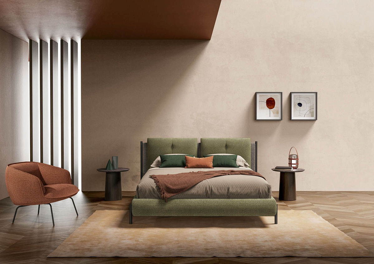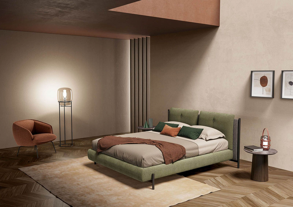Если бы кровать DANIEL от Novaluna был мелодией, это был бы мотив, постоянно чередующийся между твердыми нотами и более мягкими звуками. Стойкие нотки придают металлические элементы, украшающие боковые стороны изголовья, придавая общему дизайну ощущение солидности и решительности. То же самое повторяется и в ножках рекомендованной конфигурации, что создает приятную визуальную гармонию. С другой стороны, о сладости напоминают все мягкие детали, в том числе задняя часть изголовья, подушки и тонкий каркас кровати.