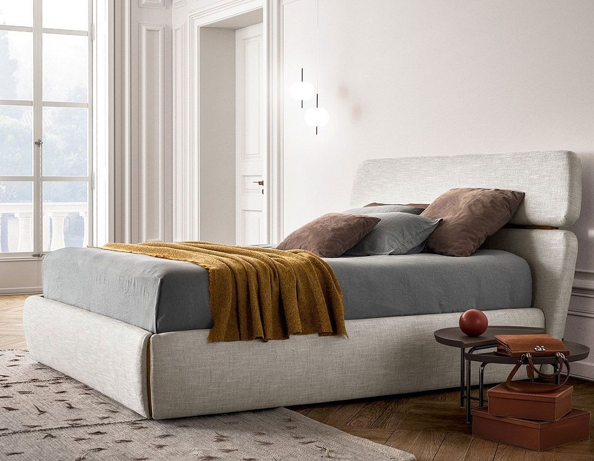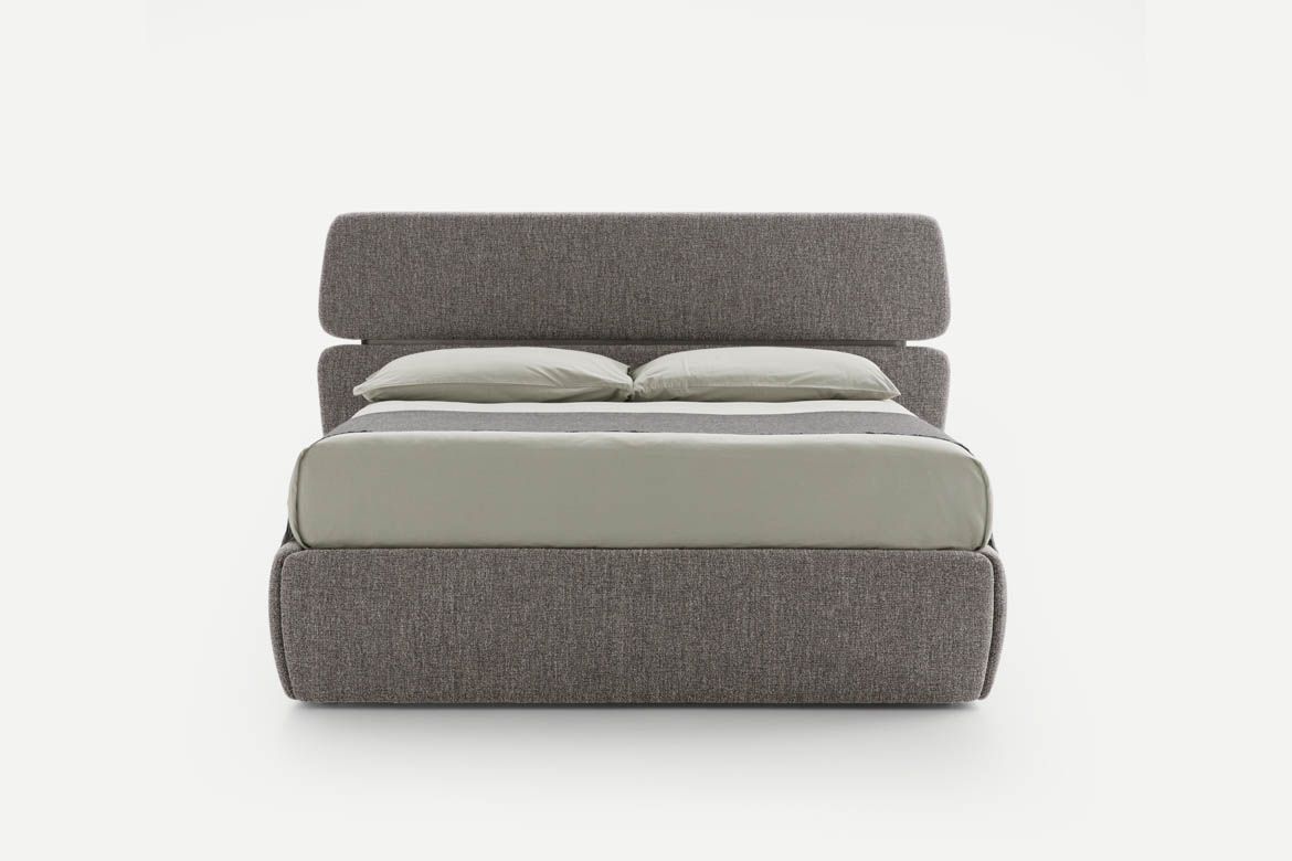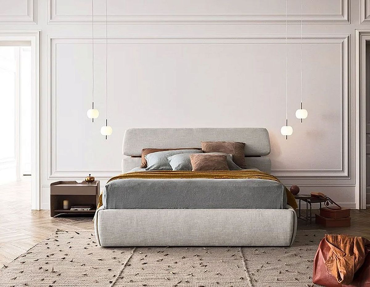 Геометричная и смелая, с открытой и удивительной индивидуальностью. Благодаря своему уникальному и неповторимому стилю эта кровать станет украшением любой спальни. Современные чёткие формы, смягченные закруглёнными углами, подчеркнуты декоративными распорками, доступными в вариантах из дерева с лакированной или металлической отделкой. Изголовье с двойной трапециевидной панелью и уникальной эстетикой является отличительной чертой кровати. Каркас полностью обит тканью, а чехол можно заказать съёмным, тканевым, кожаным или синтетическим материалом.