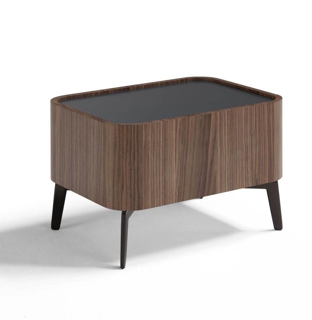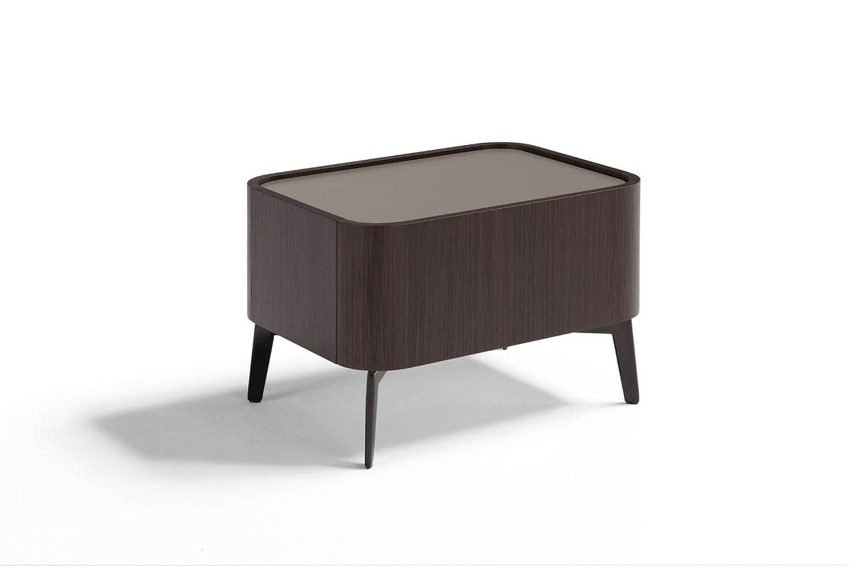 Прикроватная тумбочка LESMO от итальянской фабрики Novaluna выполнена в современном стиле, на на металлических ножках. Корпус оснащен одним выдвижным ящиком и дополнен лакированной столешницей. Сочетание плавных изгибов корпуса и четких линий ножек создают оригинальный современный дизайн.
