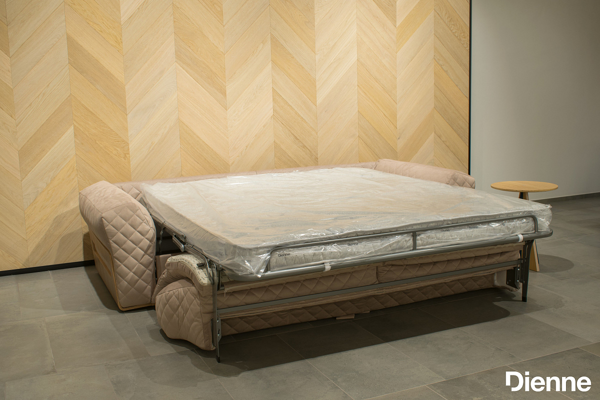 Механизм: Механика электросварной сетки, открытие происходит одним фронтальным движением поворота спинки. Переход из положения дивана в положение кровати не требует удаления установленных частей и/или обивки изделия. Механизм произведен компанией Loiudice (MEC_01)