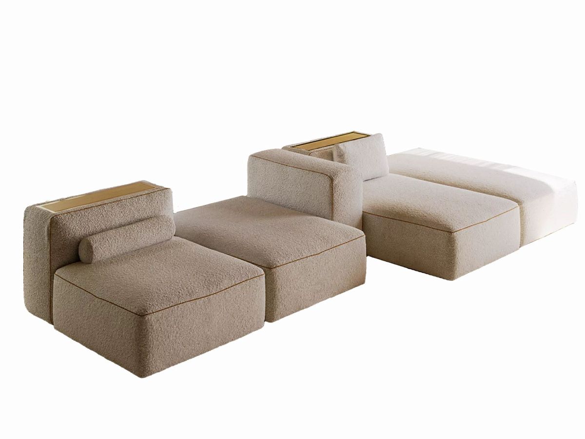 Скульптурный и лаконичный диван Blake занимает пространство как модульная композиция из чистых объемов, находящаяся в балансе между архитектурной геометрией и материальным комфортом. Модульность выражается в трёх типах сочетаемых сидений, а многофункциональная спинка откидывается, открывая внутреннее отделение с интегрированной полкой. Вставки из натурального дерева служат элегантными поверхностями для размещения предметов. Подушки в трёх вариантах и объёмные мягкие спинки создают утончённый монолитный эффект, придавая системе сдержанную современную элегантность.