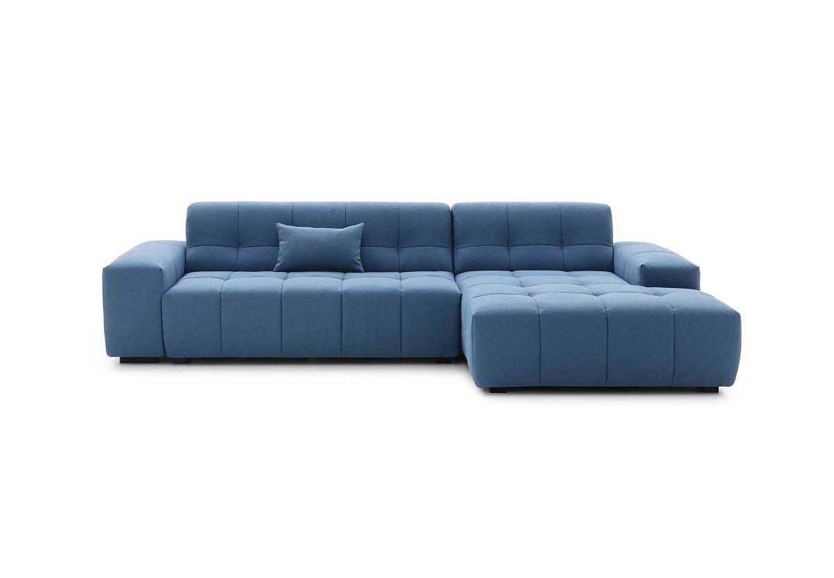 Современный модульный диван с мягкими округлыми формами, спинками, подлокотниками и кушеткой.