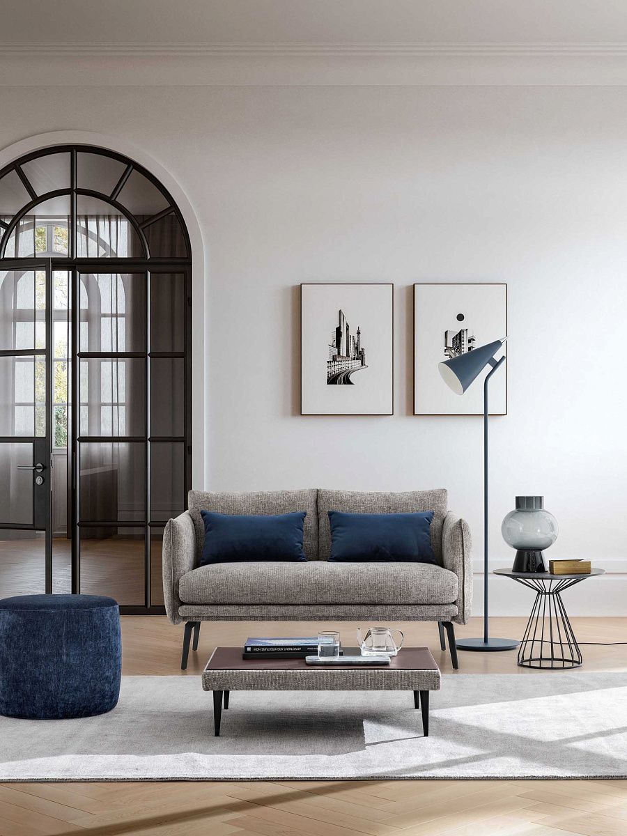 Современный и минималистичный двухместный диван с тонкими ножками, которые можно персонализировать.