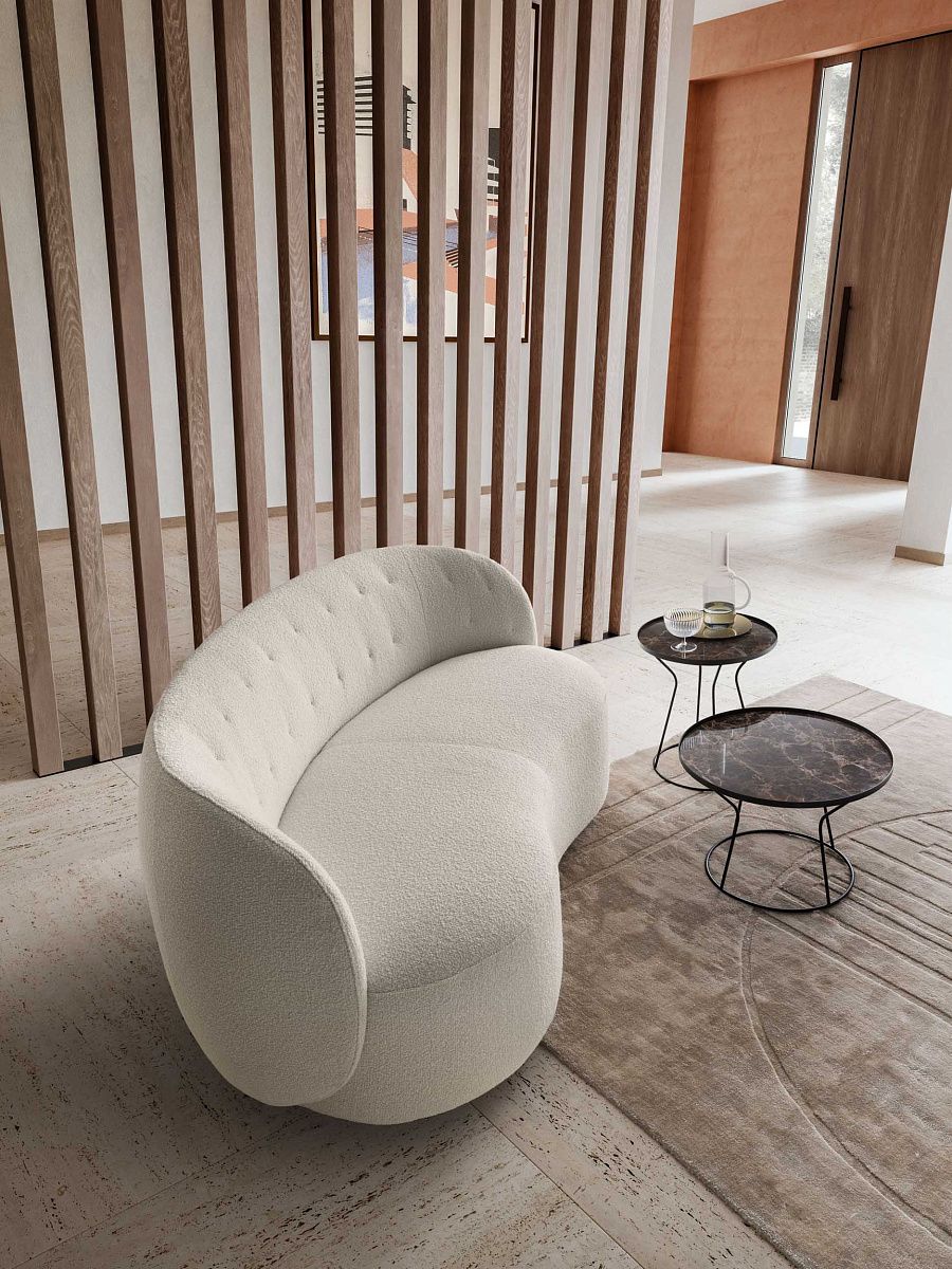 Двухместный диван без подлокотников с извилистыми формами и стеганой спинкой.