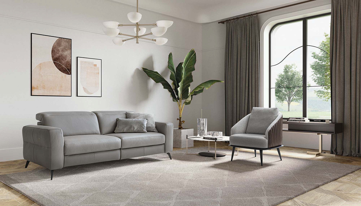 Диван-реклайнер с регулируемыми подголовниками и лаконичным современным дизайном.