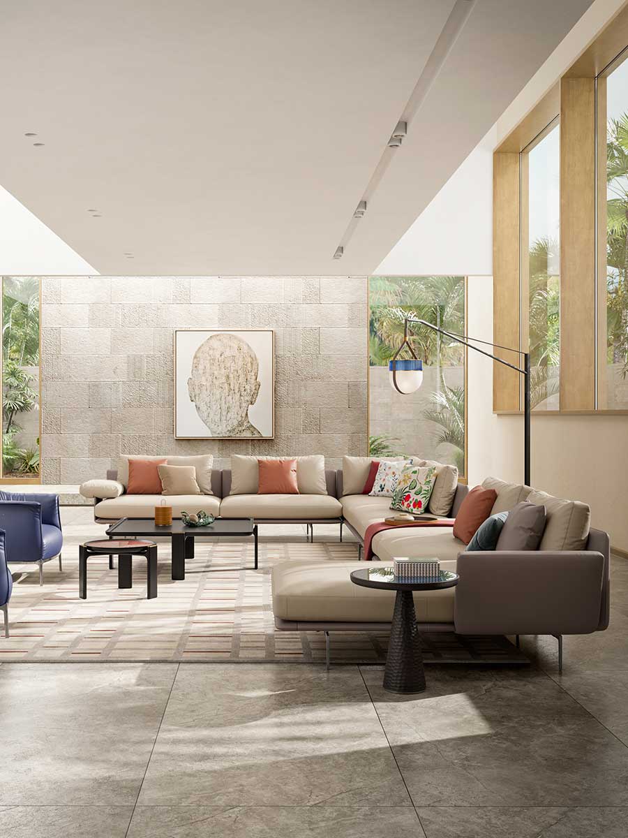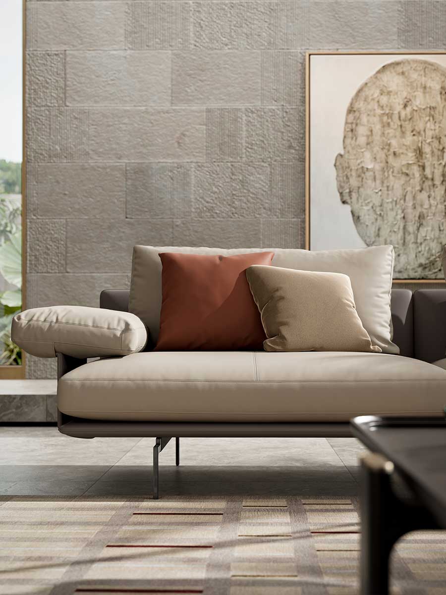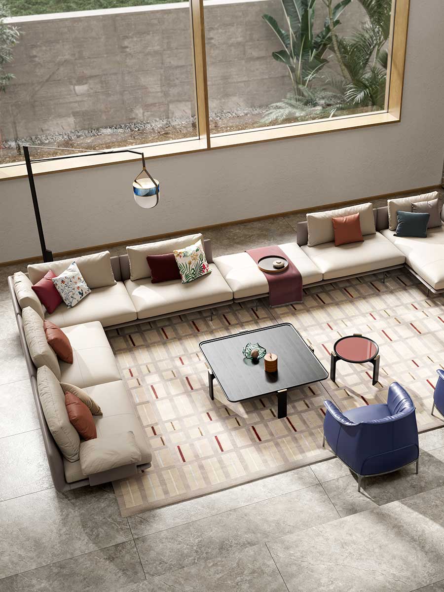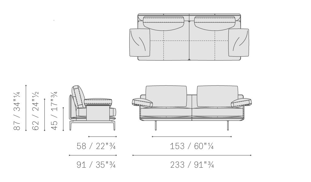 Диван Get Back отличается простотой и небрежностью в оформлении. Силуэт сиденья и спинки сливается в единый элемент, украшенный тонкой окантовкой. Обивка выполнена из кожи Pelle Frau® или ткани.