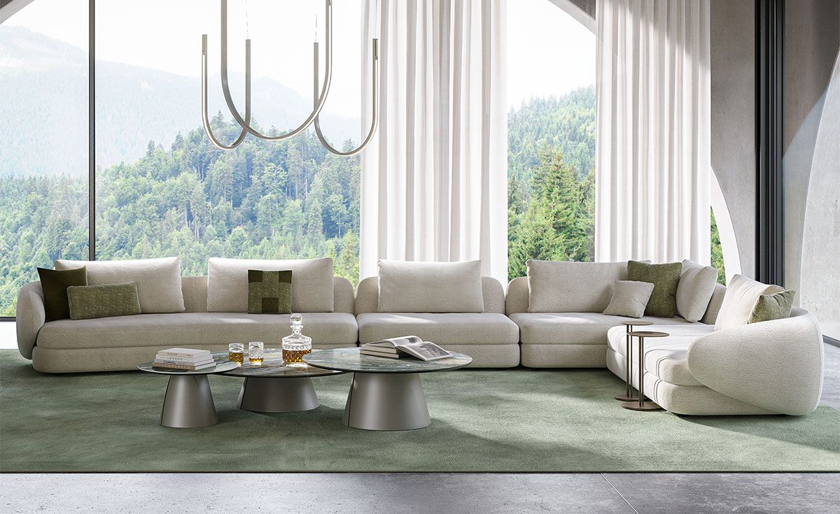 Черпая вдохновение из гармоничных форм природы, спинка обволакивает мягкие , полностью съемные подушки ; уникальный всесторонний вид позволяет создать спокойную и расслабленную атмосферу в вашем открытом пространстве . Подлокотник, абсолютный герой композиции, создает впечатление, что окружает вас теплыми объятиями, заставляя вас чувствовать себя в интимном и уютном месте. Craig также является модульным и универсальным диваном , который адаптируется к вашему пространству: выбирайте линейные конфигурации для индивидуальных бесед, создайте уютную угловую конфигурацию или добавьте кушетку в круглом и квадратном вариантах.