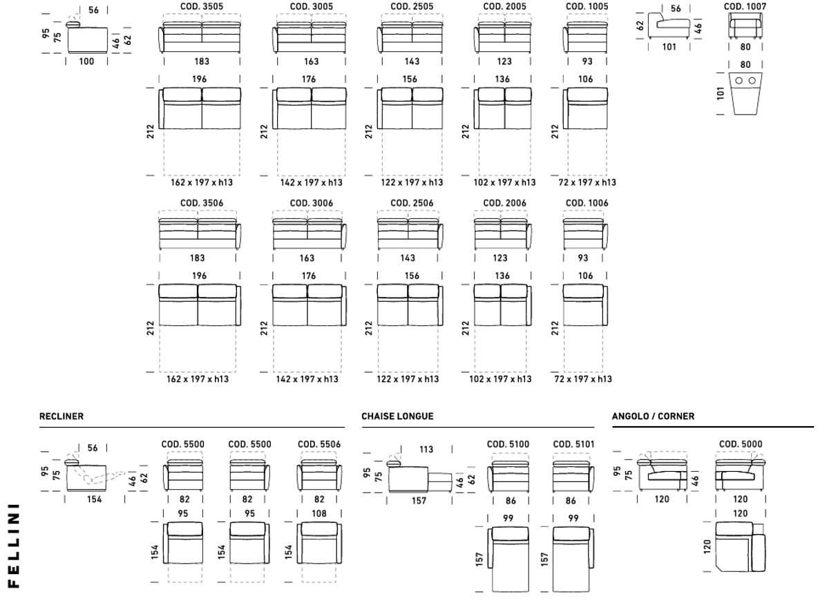 Диван-кровать Fellini разработан для комфорта и универсальности, имеет такие опции, как матрас толщиной 13 см, регулируемую спинку, встроенный шезлонг с местом для хранения и возможность откидывания спинки. Диван также можно трансформировать в двуспальную кровать.