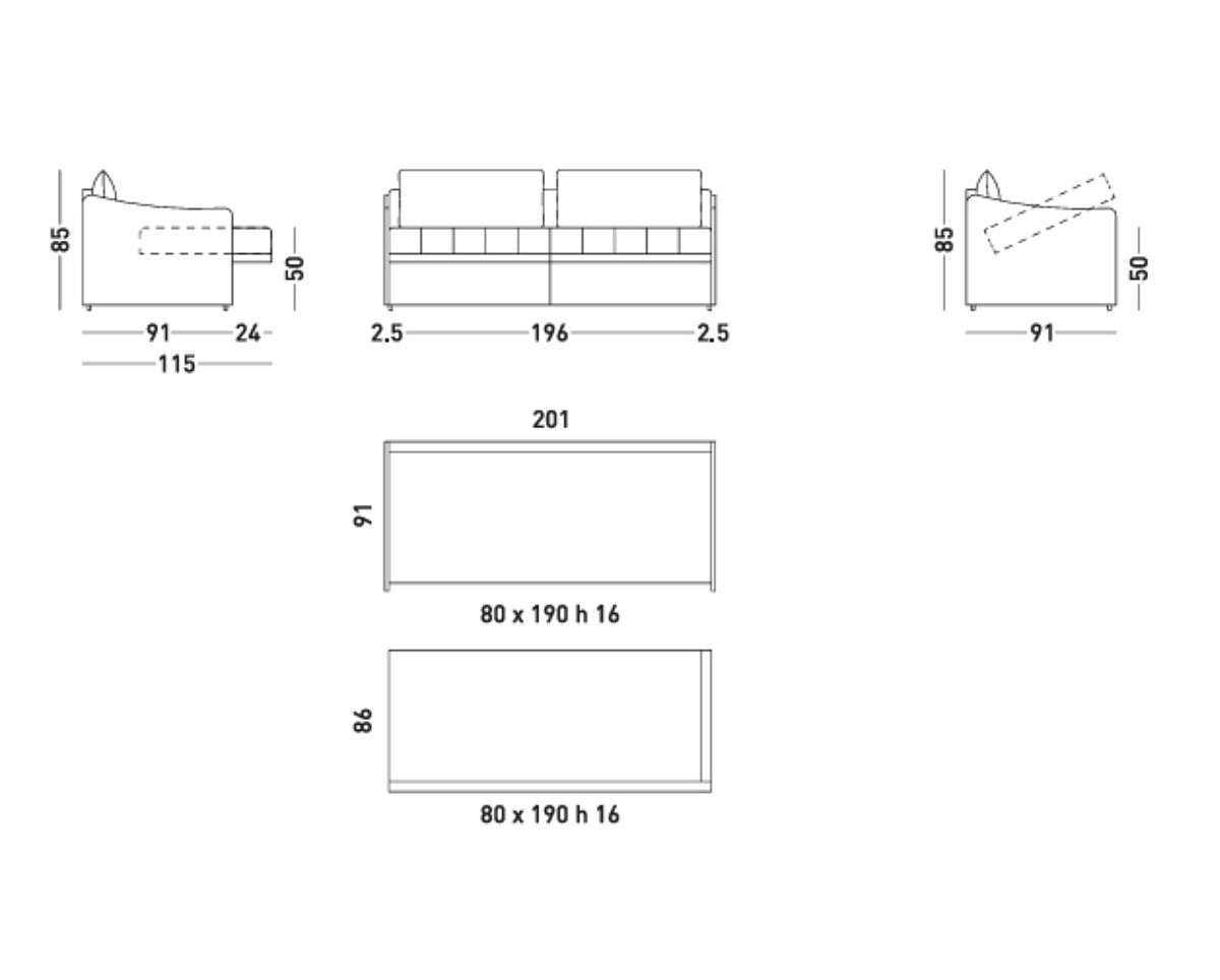 Flo — это диван-кровать с матрасом толщиной 16 см, отличающийся выдвижной системой раскрытия. Одним движением он превращается в удобную двуспальную кровать.