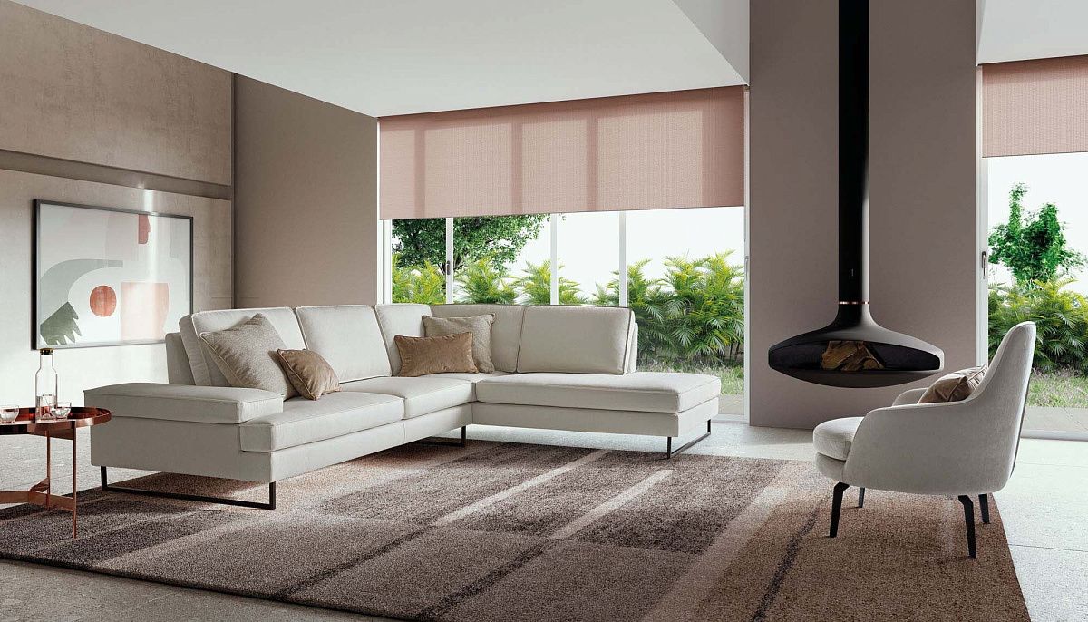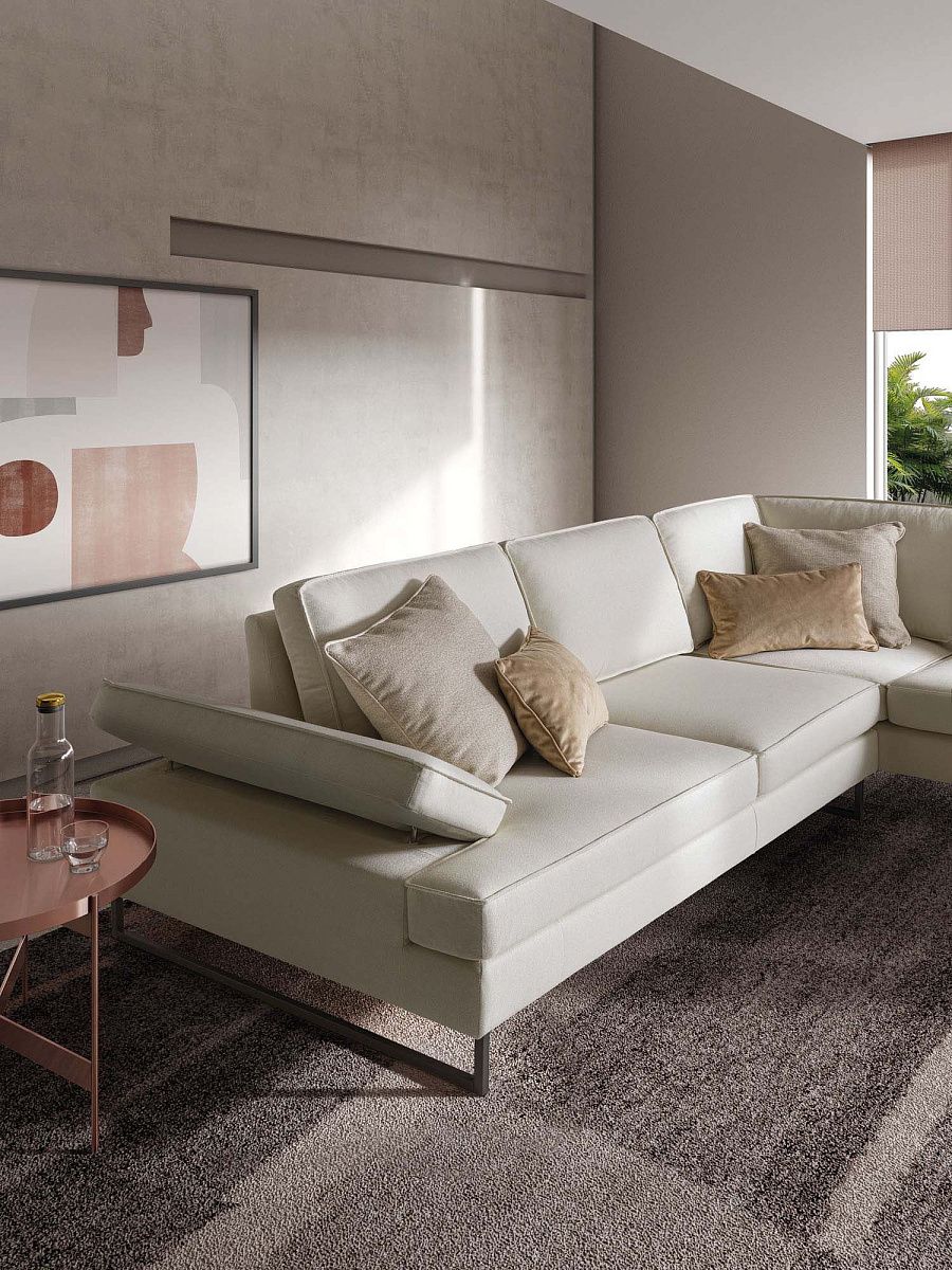 Диван с выдвижной спинкой и откидывающимися подлокотниками с элегантной строчкой.