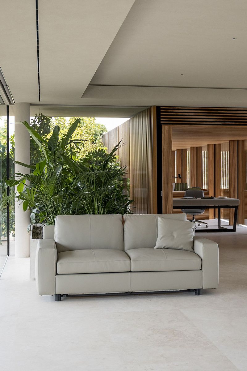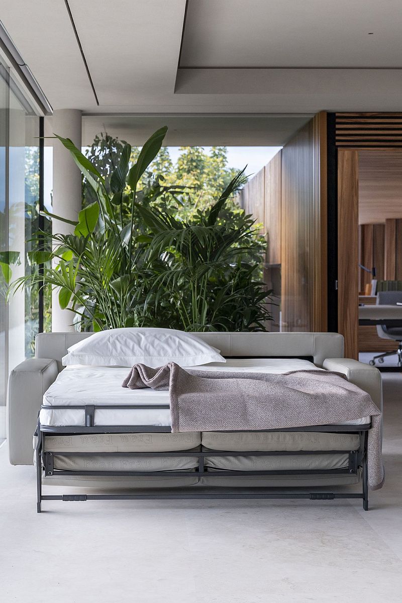Новая версия Massimosistema, разработанная Poltrona Frau Style & Design Centre, демонстрирует баланс между строгими линиями и уютным комфортом. Диван-кровать с механическим механизмом, который скрыт в конструкции, внешне неотличим от обычного дивана.