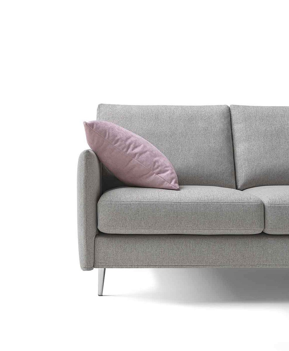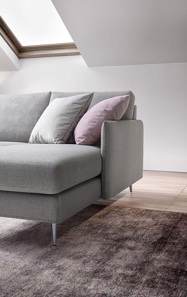 Компактный диван с регулируемой высотой спинки и асимметричным расположением угловых сидений.