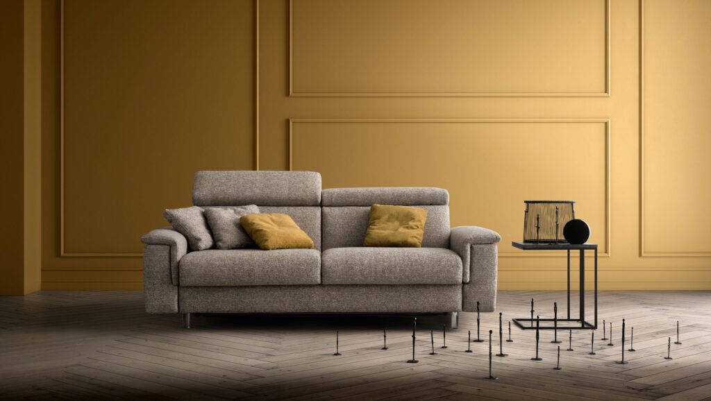 Раскладной диван-кровать с быстрораскладывающимся механизмом,в комплекте с матрасом высотой 13 см из недеформируемого пенополиуретана сосбалансированной поддержкой.