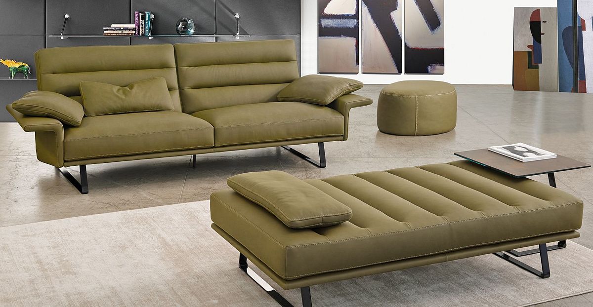 Наклонное основание и прямые подушки спинки, подчеркнутые объемными горизонтальными полосами, смягчают строгие геометрические формы этого современного модульного дивана и обеспечивают требуемый комфорт. Присущая городскому стилю красота дивана дополняется журнальными столиками разных размеров и видов отделки, которые могут использоваться как аксессуары, так и самостоятельные композиции.