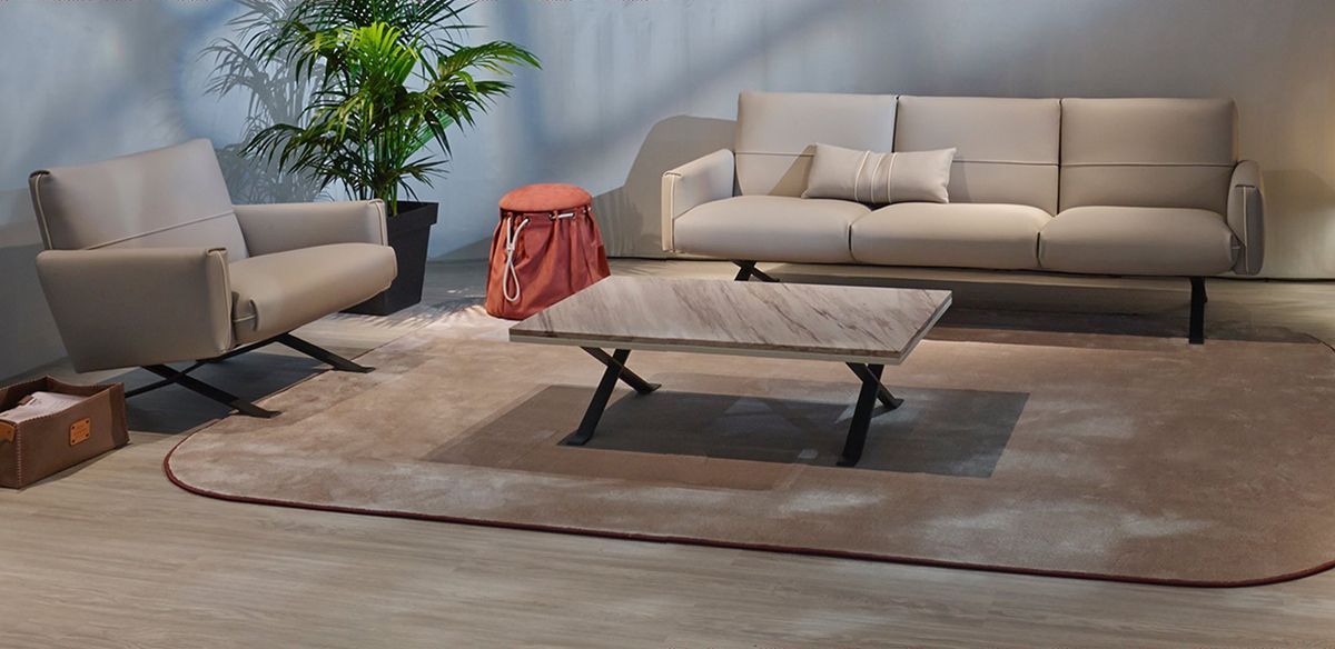 Конструкция из массива дерева на металлической опоре позволяет сохранять основание легким и воздушным без использования центральной ножки даже при максимальном удлинении модуля до 240 см. Идеально эргономичные спинка и сиденье изогнутой формы и уменьшенной толщины подходят для любой обивки. Тщательно продуманная минималистичная отделка — модный штрих, подчеркивающий изысканность итальянского стиля, — в нужном месте. Скрещенная основа из толстого металла, прочная, но легкая, доступна во всех вариантах отделки коллекции. В эту линейку входят кожаная кресло-кушетка, пуф, подушки и столики разных размеров. В некоторых элементах предусмотрен полуостров с мраморной столешницей, чьи пропорции и толщина сочетаются друг с другом, идеально вписываясь в общую эстетику. Rialto представляет собой безупречный синтез формы и функциональности для корпоративных пространств и проектов, требующих более компактных комфортных и стильных решений.
