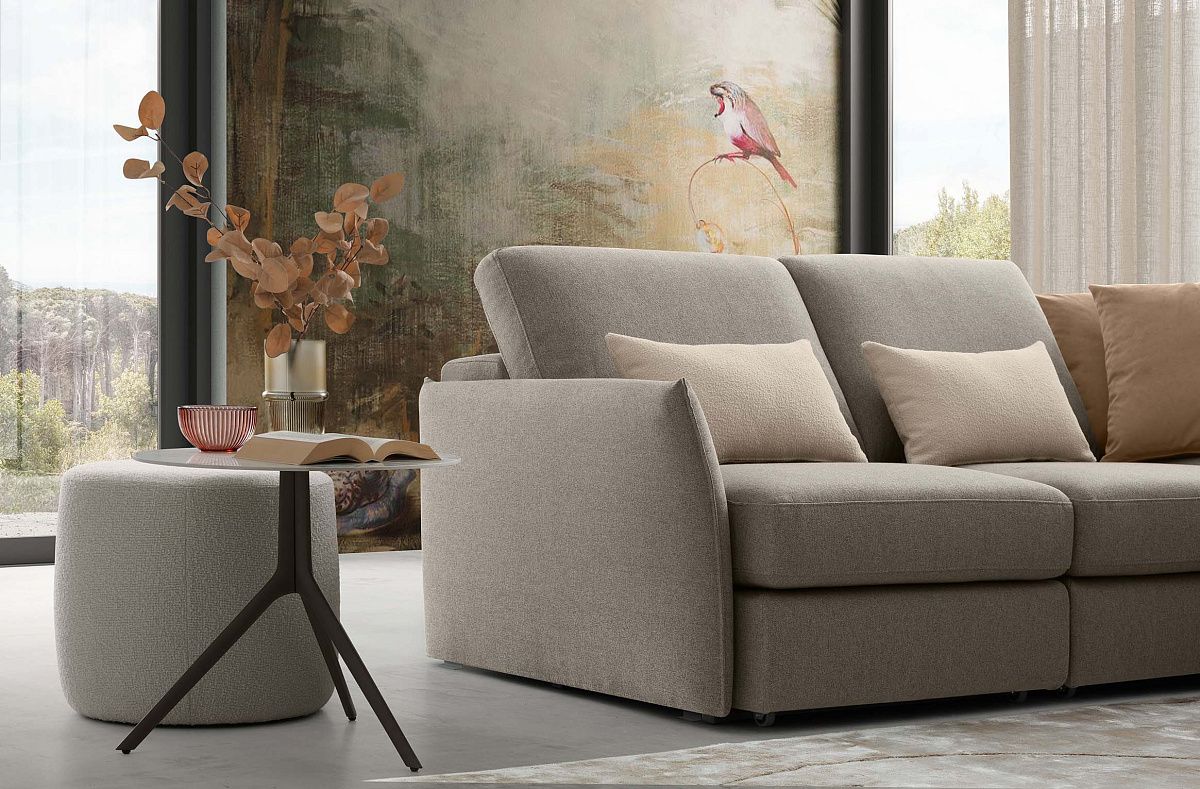 Классический диван с выдвижными сиденьями и регулируемыми подлокотниками.