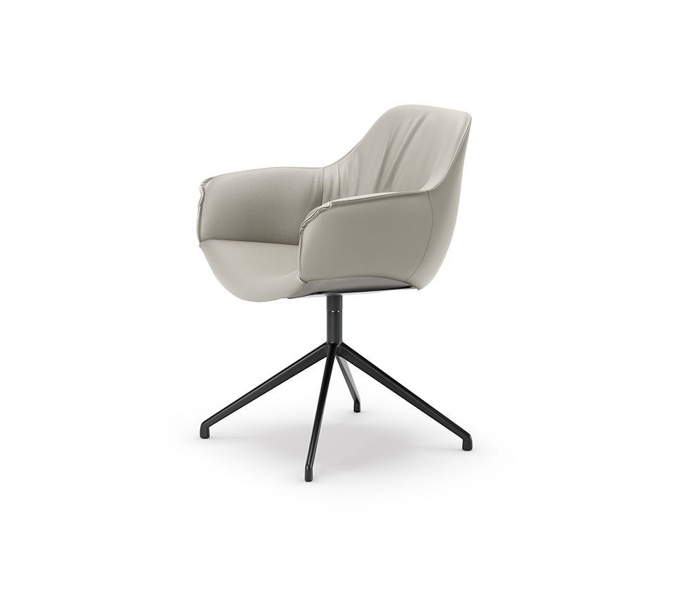 Округлые мягкие стулья из линии Scarlett передают идею естественной элегантности, что делает их подходящими для уютных и комфортных дизайнерских столовых. Мягкие складки, украшающие внутреннюю часть спинки, контрастируют с натянутой передней частью, которая словно обволакивает тело. Более высокие по сравнению со стандартными стульями для столовой размеры обеспечивают лучшую поддержку спины и максимальный комфорт в течение длительного времени. Хорошо заметные отстрочки подчеркивают силуэт сиденья и, раскрываясь как нежные лепестки, позволяют подлокотникам выступать наружу. Этот стул с подлокотниками для столовой представлен в нескольких версиях. Модель Scarlett ML с металлическими ножками легче и мобильнее, чем версия Scarlett Wood с эффектными ножками из ценных пород дерева. Версия Scarlett Cantilever, с другой стороны, характеризуется типичной конструкцией консольных стульев, состоящей из единого стального стержня. Более функциональным или удобным вариантом для офиса является Scarlett Turn — дизайнерский вращающийся стул с 4-спицевым основанием. Глубина структуры и соединение ножек внизу задней части спинки подчеркивают изысканность изгибов этих элегантных современных стульев. Линия Scarlett — это идеальное сочетание элегантности и практичности, выразительности и сдержанности.