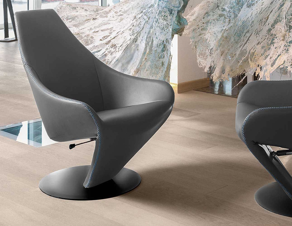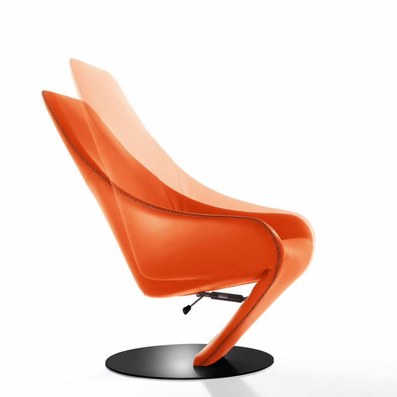 Дизайнерское кожаное кресло, отличающееся эргономичностью, со специальным швом, проходящим по всему периметру изделия от основания до верха. Это кресло поставляется с крутящейся основой или откидной спинкой для максимальной релаксации и комфорта.