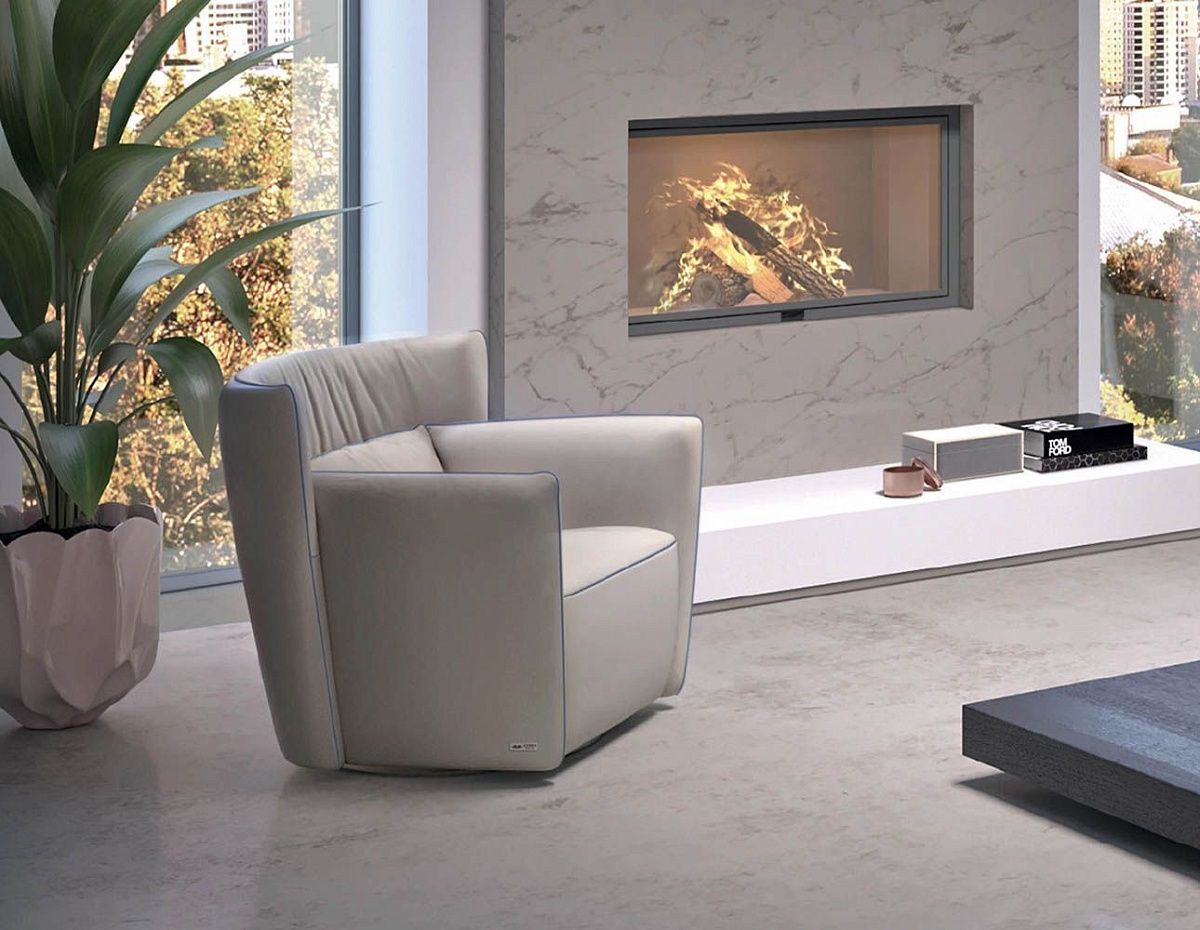 Современное кожаное кресло с мягким эластичным сиденьем и персонализируемым швом.