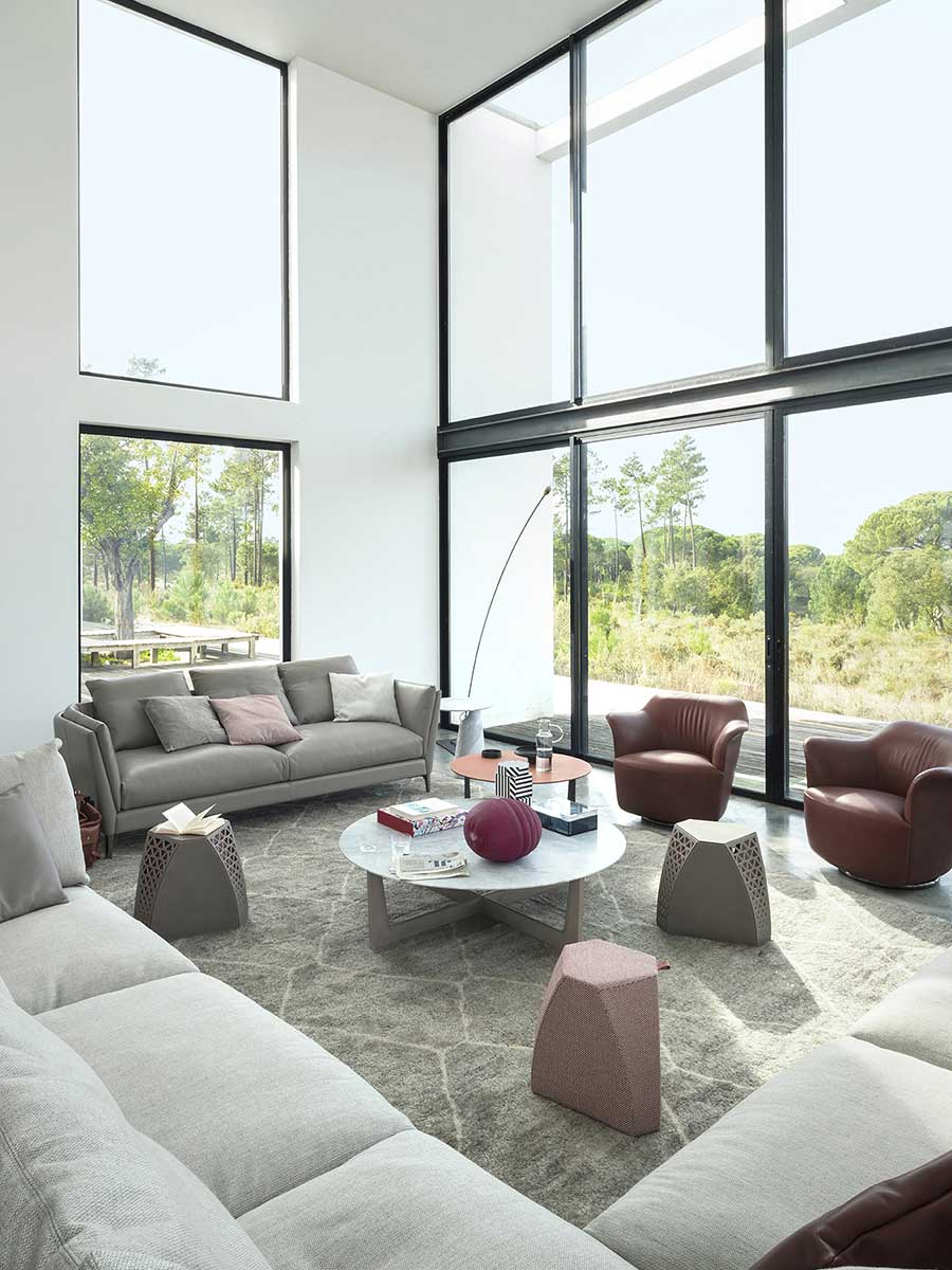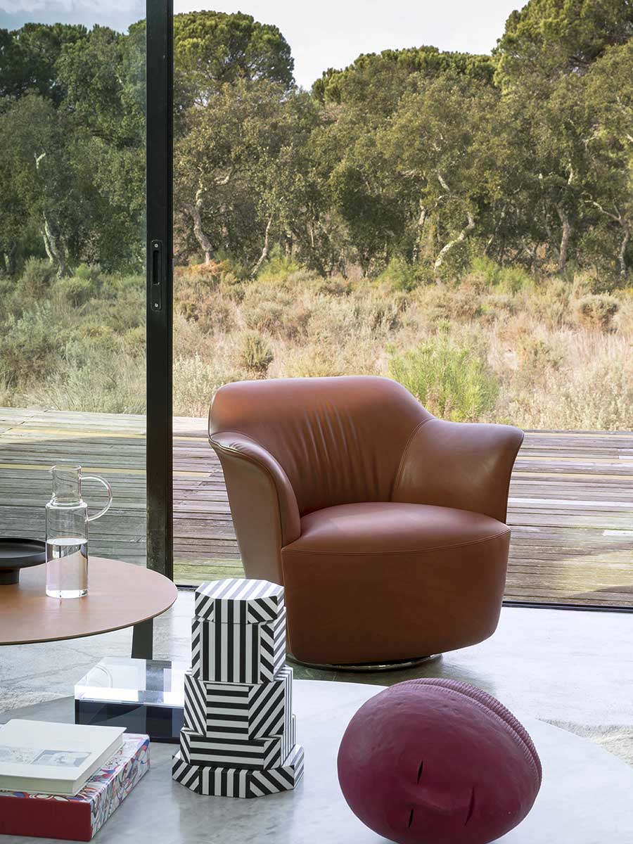 Как и в классических моделях из архивов Poltrona Frau, пружинная система сиденья, изготовленного из выдержанного бука и берёзовой фанеры, состоит из вручную связанных стальных биконических пружин, прикреплённых к джутовым ремням. В соответствии с новейшими технологиями, спинка и обивка сиденья изготовлены из формованного пенополиуретана. Помимо полностью кожаной версии Pelle Frau®, кресло Aida может сочетать внешнюю поверхность из кожи Pelle Frau® с тканевой внутренней поверхностью. Другая возможная версия — кожа Cuoio Saddle Extra для сиденья и кожа или ткань Pelle Frau® для внутренней поверхности. Кресло Aida доступно как в фиксированном, так и в поворотном исполнении.