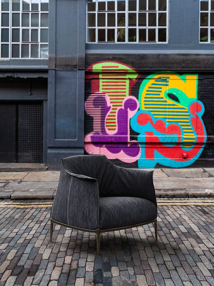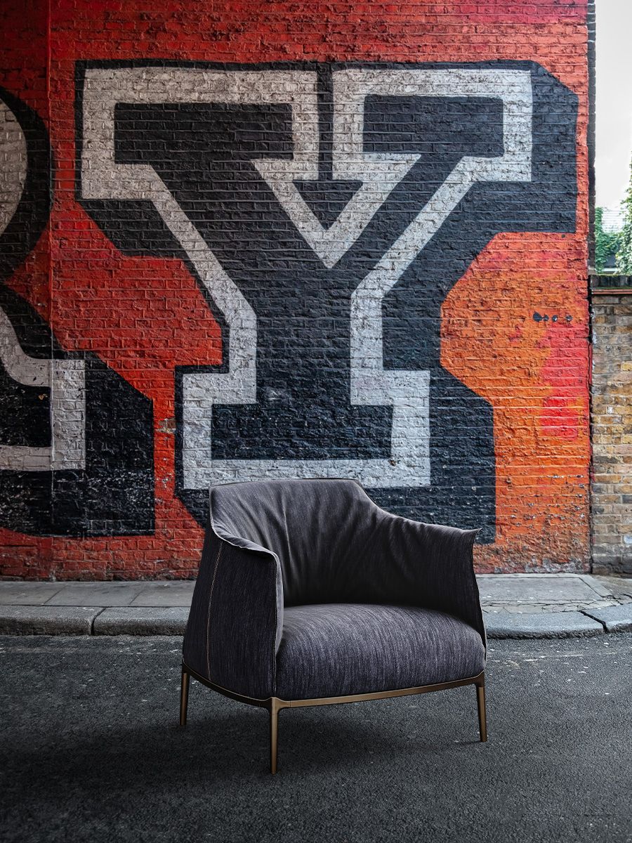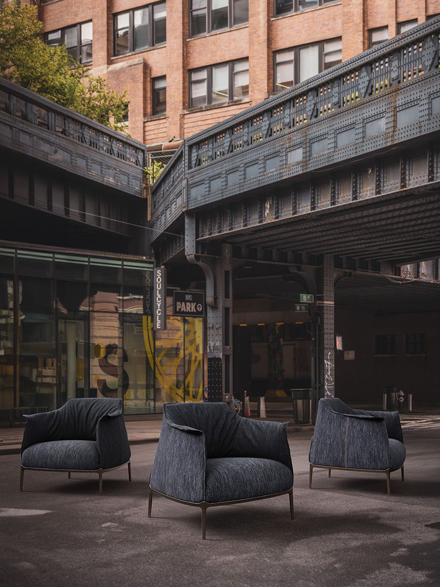 Очарование денима вдохновило на создание новой обивки для Archibald, культового кресла Poltrona Frau, разработанного Жаном-Мари Массо. Появляется Archibald Denim Edition — стильное городское сочетание, придающее свободный вид и лоск, идеально подходящее для современной мебели класса люкс. Мягкие и утончённые линии Archibald облачены в новый чехол: жаккардовую ткань из органического хлопка с типичной для денима саржевой структурой, изготовленную со специальной стиркой, которая делает её ещё более прочной и подходящей для обивки мягкой мебели. Ткань, получившая название Everdenim, имеет характерную утолщённую основу, придающую ей глубокий, объёмный вид и ощущение поношенности, вдохновлённое эффектом «выцветшей» джинсовой ткани и насыщенным, элегантным тёмно-синим цветом. Хлопок натурального происхождения сертифицирован по стандарту GOTS (Global Organic Textile Standard) и пригоден для химической чистки. Джинсовый эффект дополняется двойной отстрочкой жёлтого цвета и основой с новой отделкой «Антика Бронза», также вдохновлённой заклёпками и различными металлическими деталями, используемыми в дениме. Синее джинсовое кресло украшено лейблом из кожи Saddle Leather цвета Camel с логотипом, выполненным методом горячего тиснения, и надписью «Archibald Denim Edition. Уникальный, как и ты», вышитой на спинке.