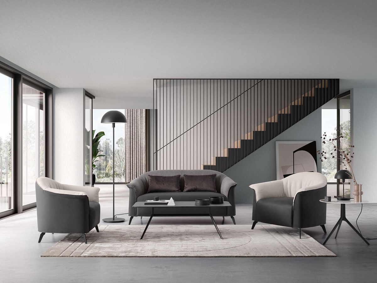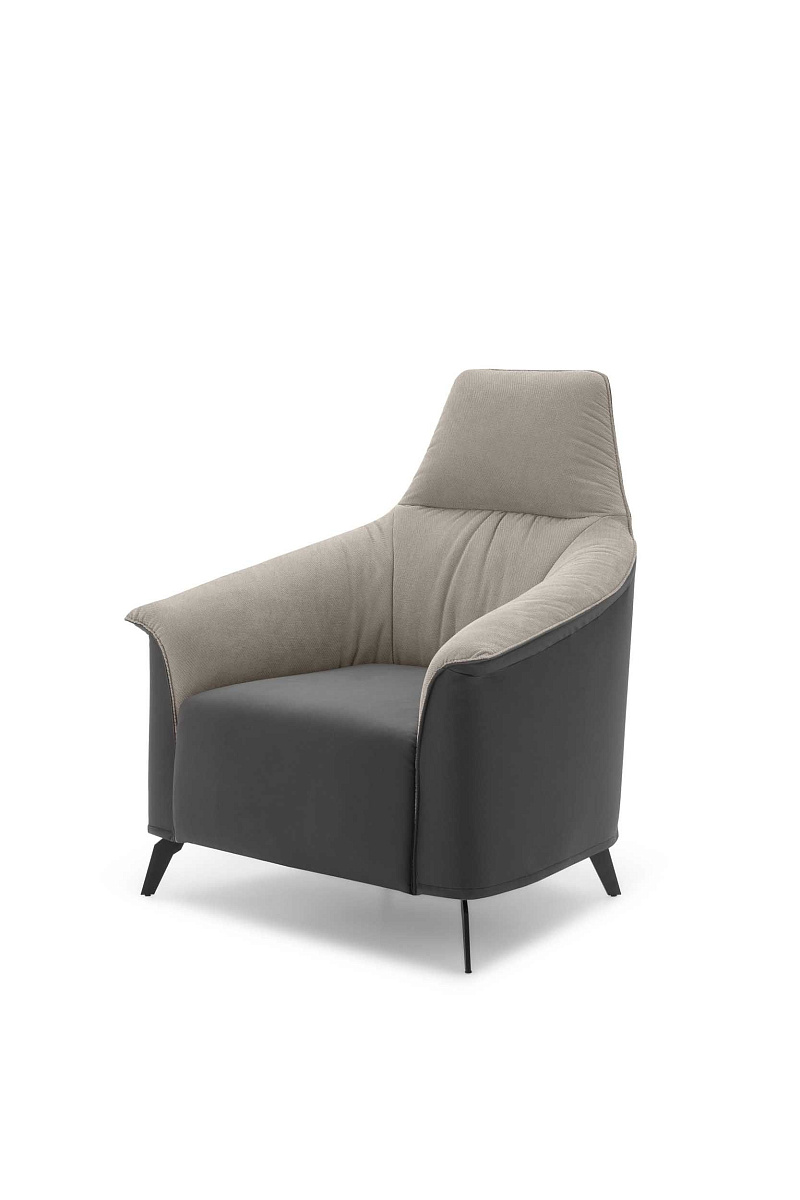 Эклектичное кресло с высокой или низкой спинкой и двухцветным сиденьем, которое можно менять по желанию.