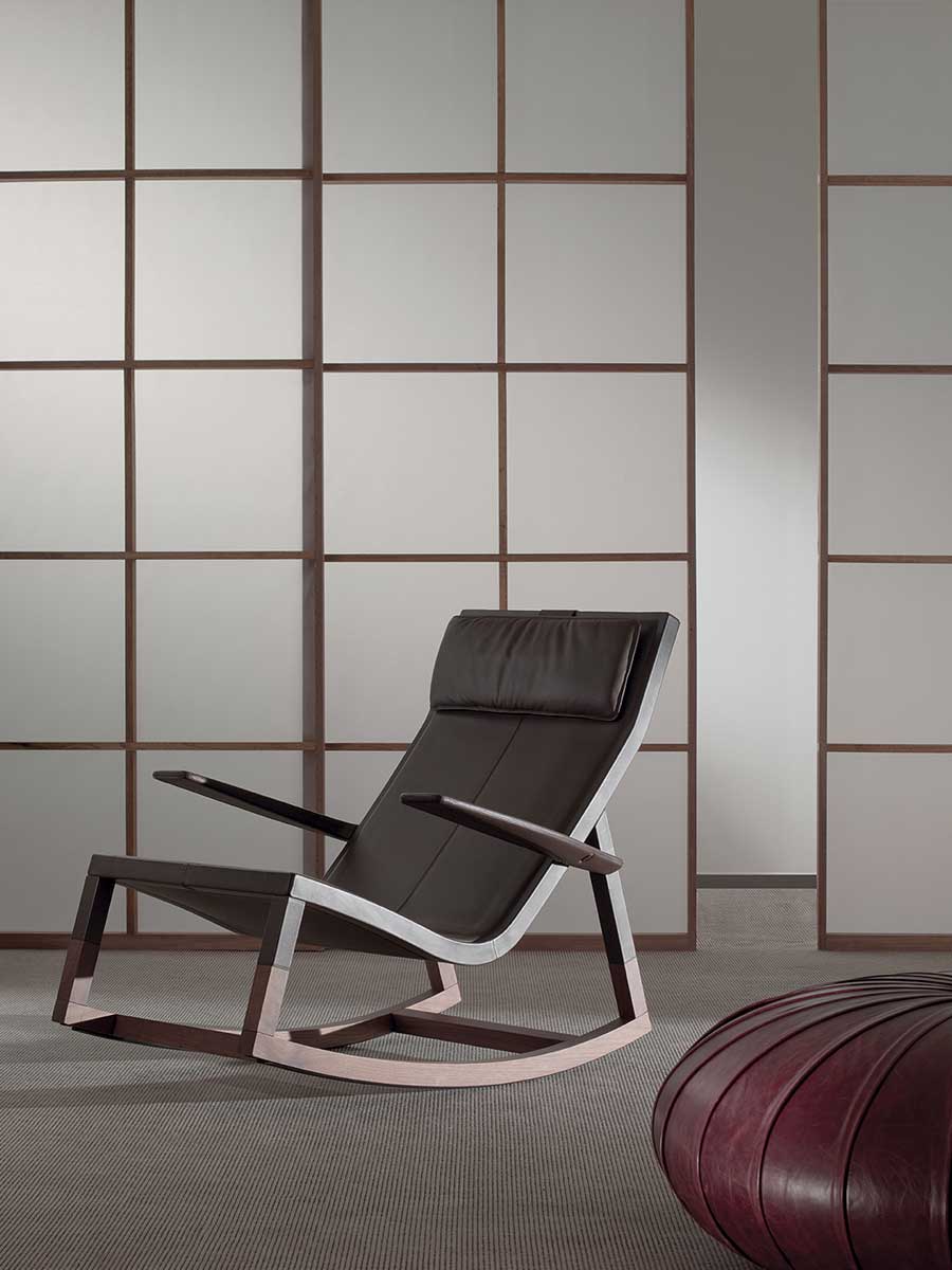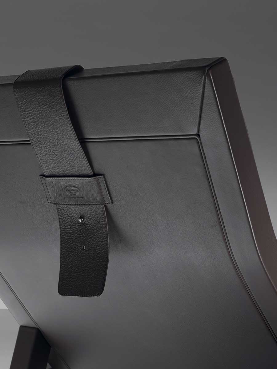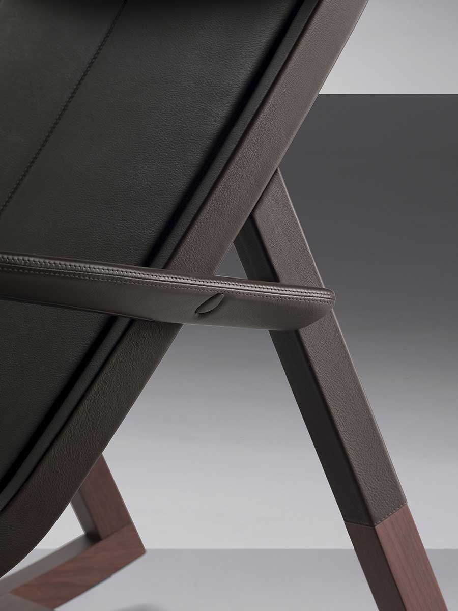 орех. Обивка выполнена из кожи Pelle Frau®. Специальная продольная строчка украшает всю обивку