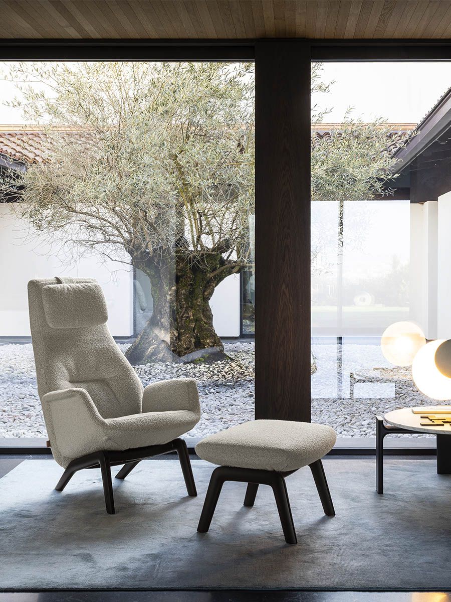 Аэродинамичные, слегка откинутые контуры кресла Downtown Lounge располагают к расслаблению. Дифференцированная плотность набивки и подголовника обеспечивает исключительный комфорт. Конструкция доступна в фиксированном варианте с основанием из массива дерева в различных вариантах отделки или в поворотном варианте с основанием из литого под давлением алюминия с четырьмя спицами. Основание оснащено механизмом возврата, обеспечивающим вращение на 360° и автоматический возврат в исходное положение. В обоих вариантах кресло Downtown Lounge может быть полностью обито кожей Pelle Frau® или тканью различных цветов.