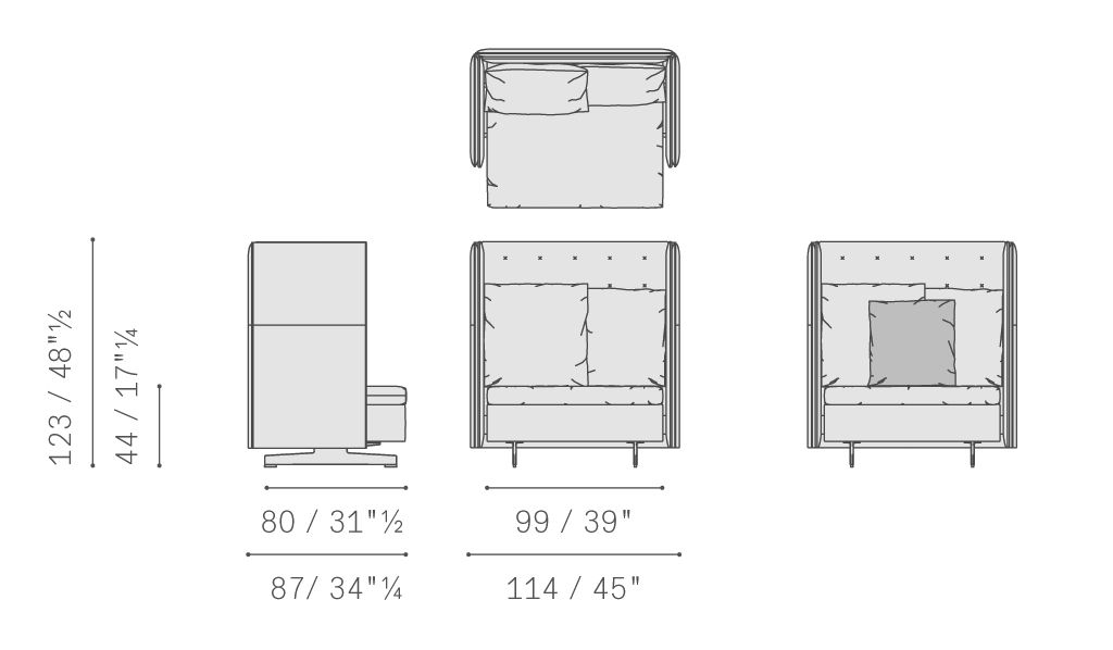 Каркас сиденья выполнен из трубчатого металла с ткаными эластичными ремнями. Спинки и подлокотники изготовлены из берёзовой фанеры. Внешняя обивка спинки и боковин выполнена из пенополиуретана и полиэстеровой ваты, а внутренний слой — из полиэстеровой ваты, покрытой мягкой тканевой простёжкой с крестообразной строчкой, выполненной вручную контрастной нитью. Подушка сиденья наполнена гусиным пухом и полиэстеровой ватой со стабилизирующей вставкой из пенополиуретана. Каждое кресло и диван GranTorino HB укомплектованы определённым количеством подушек из гусиного пуха. Обивка сочетает кожу или седельно-седельную кожу с тканью: Saddle, Saddle Extra или Pelle Frau® для вертикальных панелей спинки и боковин, а также съёмную ткань для основания, подушек и стёжки. Версия из седельно-седельной кожи дополнена рельефной строчкой, а кожа с чистым срезом отделывается вручную. Дополнительный столик имеет основание из окрашенной стали, цвета титана или серого оружейного металла, и столешницу из ореха Canaletto или обитую кожей Pelle Frau® или шорно-седельной кожей.