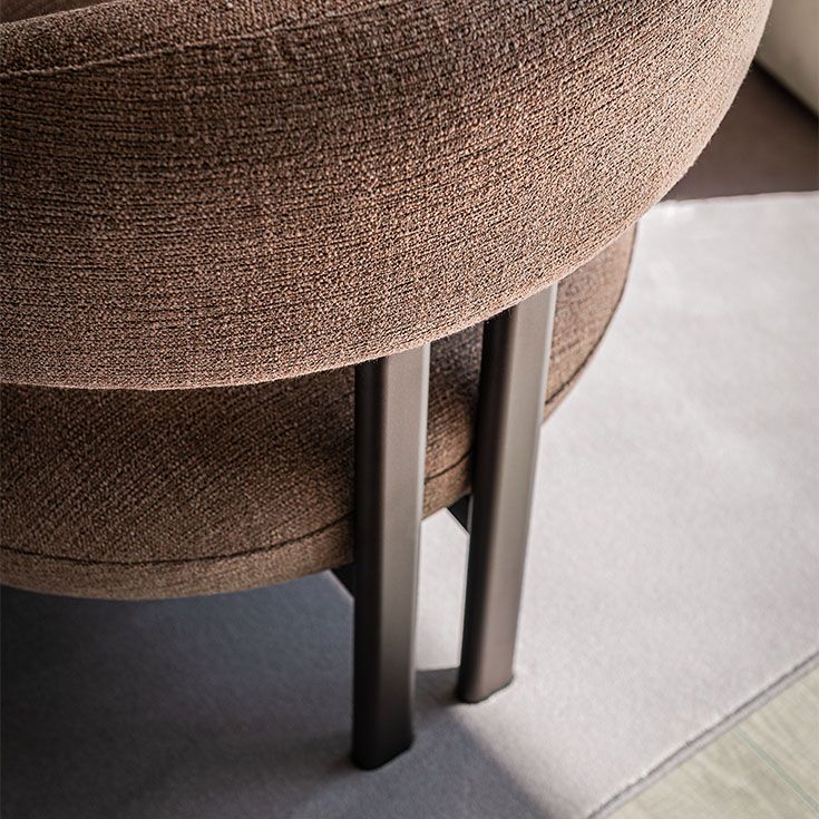 Между сиденьем и основанием создаётся интригующая игра контрастов, сочетающая мягкие и металлические материалы, объёмные и пустые объёмы, уютные и чёткие контуры.