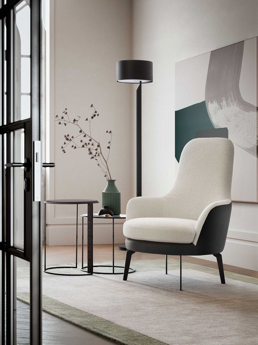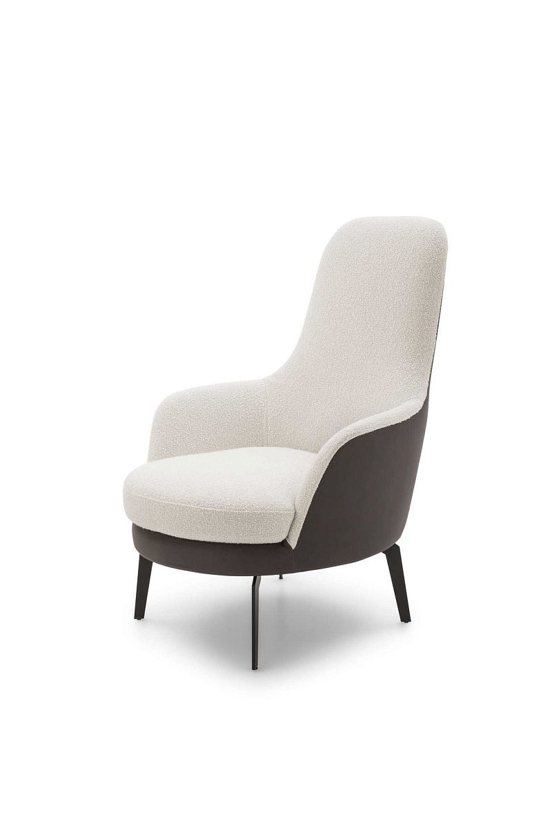 Фиксированное или поворотное кресло с высокой удобной спинкой. Доступен вариант с двухцветной обивкой и регулируемыми ножками.