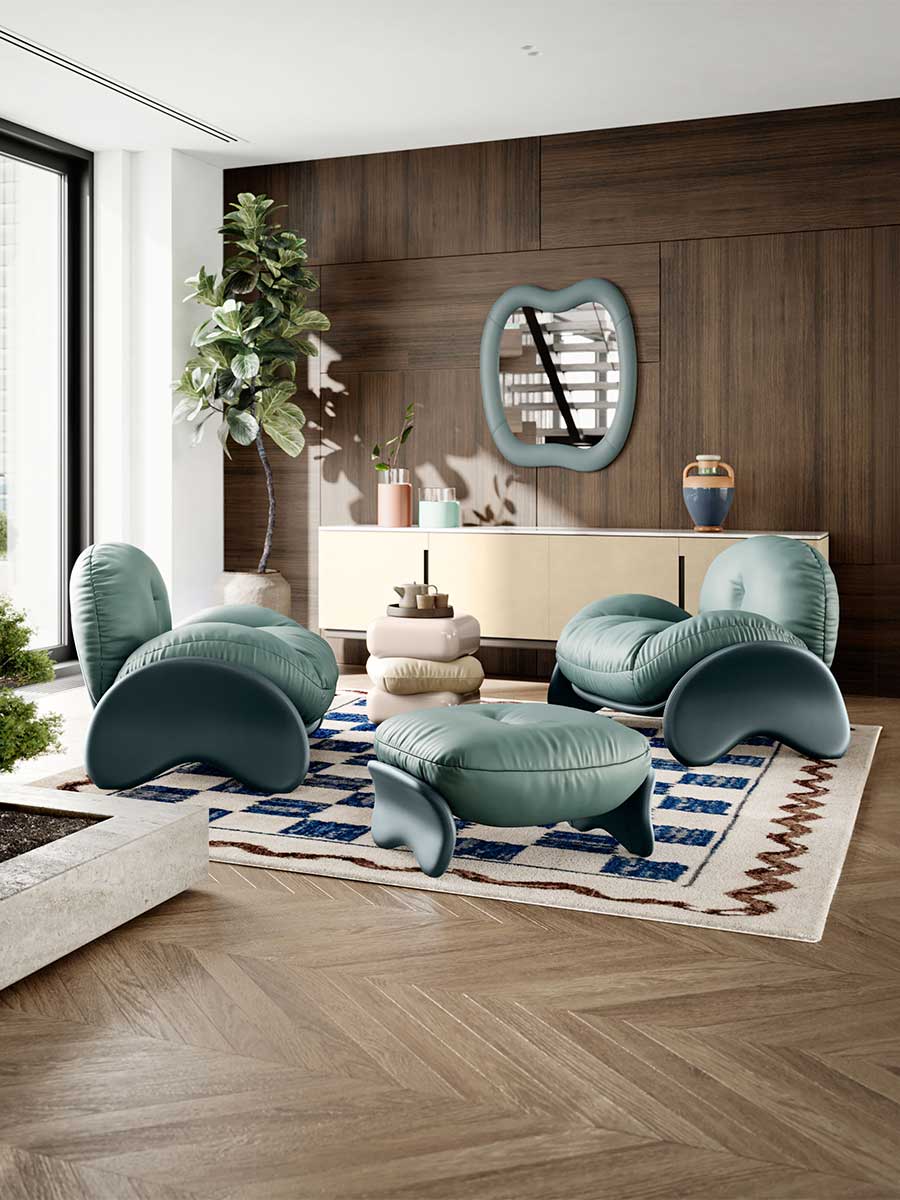 Кресло Squash с его просторными и удобными контурами изготовлено на жёсткой раме из материала Polimex®, поддерживающей большую мягкую подушку, обитую Pelle Frau® или комбинацией кожи и ткани, со съёмной обивкой. Каркас и ножки имеют лёгкую обивку, что делает их приятными на ощупь. Ножки основания обиты кожей. Подушки сиденья и подлокотников изготовлены из полиэстерной ваты и пенополиуретана дифференцированной плотности для максимального комфорта. Основание сиденья изготовлено из берёзовой фанеры. Рекомендованные дизайнером цветовые сочетания для кресла Squash: кремовый, шалфейный, синий и коричневый.