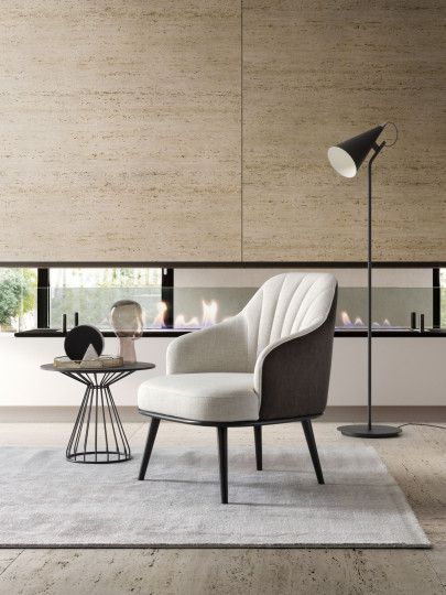 Кресло AARON от LeCOMFORT Salotti на четырех высоких ножках и формой спинки в виде морской раковины станет отличным элементом для релаксации в вашей гостиной.