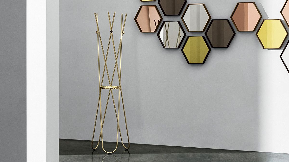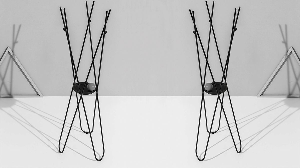 Wdrobe — металлическая вешалка для одежды. Она является воплощением минимализма и функциональности благодаря практичному лотку для монет. Каркас и аксессуары выполнены из гнутого металла, доступны в вариантах отделки: полированная латунь, полированная медь или чёрный тиснёный.