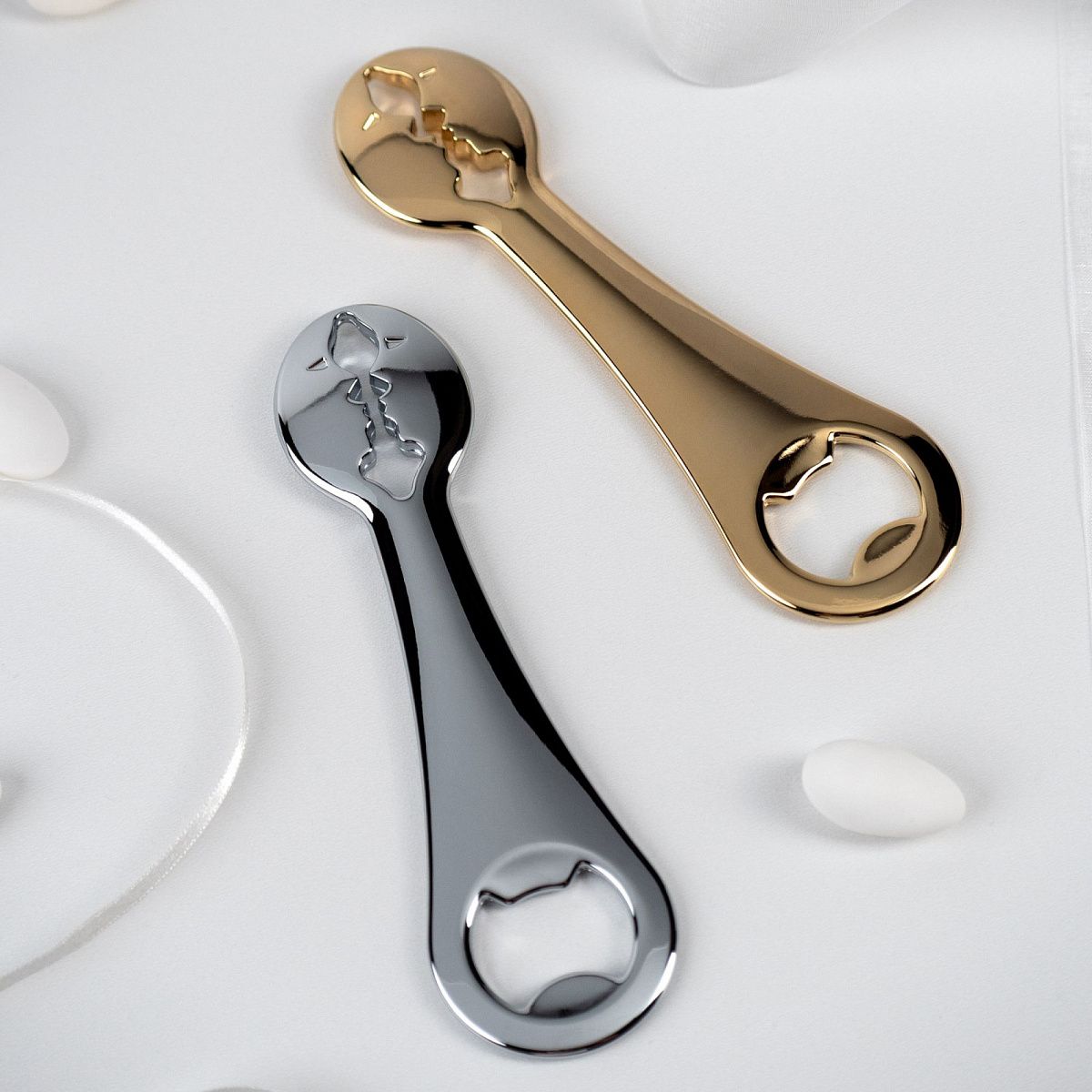 Открывалка для бутылок Kiss отличается культовым дизайном, изображающим силуэты двух целующихся лиц, что является характерной чертой линейки Kiss. Изготовлена из цинково-алюминиевого сплава (ЦАМ) и доступна в хромированном и покрытом 24-каратным золотом вариантах. Это оригинальный и изысканный вариант подарка, а также идеальный подарок для вечеринки по случаю самых важных событий. Идеальный аксессуар для дома.