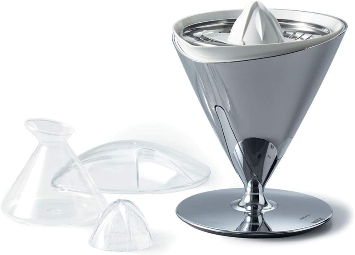 Vita — это электрическая соковыжималка для цитрусовых, которая зарядит вас энергией на весь день. Помимо современного и изящного дизайна, вдохновлённого культовой буквой «V», Vita — это динамичный прибор: электрическую соковыжималку можно наклонить, чтобы было удобнее наливать сок. Vita — соковыжималка, которая вращается. Проект начался с жеста выжимания и наливания сока, характеризующегося плавными и изящными движениями. Ощущение, которое ощущается рукой, — уверенное и точное, а использование — простое, безопасное и надёжное.