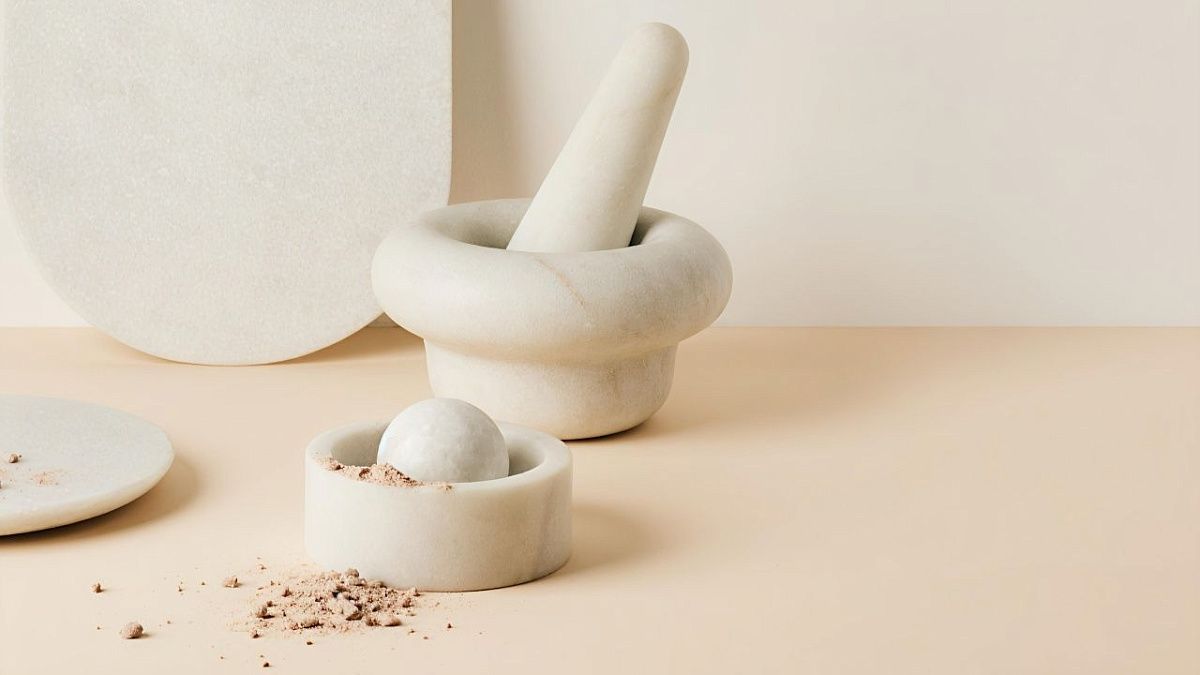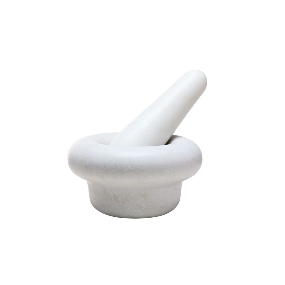 Многочасовая работа в лондонском ресторане Тома Диксона принесла плоды: этот увесистый блок из белого мрамора Морвад предназначен для дробления, измельчения и перемалывания специй и трав. Увеличенный закругленный край обеспечивает надёжный захват, а латунный пестик придаёт роскошный блеск.