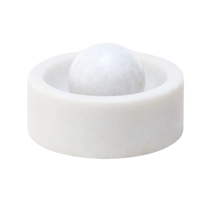 Самый простой инструмент для специй на кухне: скатывайте шарик ладонью и измельчайте специи. Протестировано и одобрено лондонской кухней Тома Диксона. Вырезано из цельного куска мрамора, с мраморным шариком. Идеально сочетается с  каменными пестиком и ступкой из коллекции Stone.