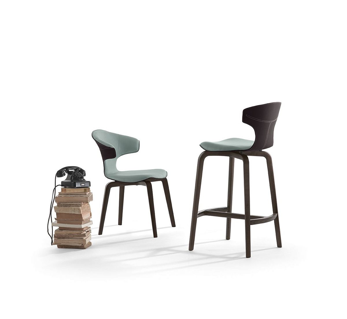 В барном стуле Montera ножки приподняты и выделяются своей крестообразной структурой и металлической подставкой для ног цвета оружейной стали спереди. Спинка меньше, сохраняя свою характерную изогнутую форму. Используются те же материалы и отделка: кожа Pelle Frau® и кожа Cuoio Saddle Extra, прошитые необработанным швом, идеально дополняют друг друга. Также доступна версия, полностью обитая кожей Pelle Frau®. В этом случае строчка выполнена нитью в тон. Корпус барного стула Montera изготовлен из формованной, изогнутой паром и прессованной буковой фанеры с наполнителем из пенополиуретана. Основание выполнено из массива ясеня, окрашенного в цвет венге или мокко. Барный стул имеет пластиковые накладки и небольшой лист металла с покрытием цвета оружейной стали для защиты верхней части подставки для ног. Стул-колонна Montera вращается на 360°, а его высота регулируется благодаря газовой пружине, управляемой рычагом из хромированной стали, расположенным под сиденьем. Основание из хромированной стали состоит из крестовины с четырьмя кронштейнами, колонны, подставки для ног и круглой пластины. Поперечная пластина с чёрными нейлоновыми проставками фиксирует сиденье к основанию. Трубчатая подставка для ног имеет характерную рифленую отделку с ромбовидным узором. Верхняя часть сиденья (над подставкой для ног) обтянута кожей Cuoio Saddle Extra или кожей Pelle Frau®, соответствующей обивке сиденья.