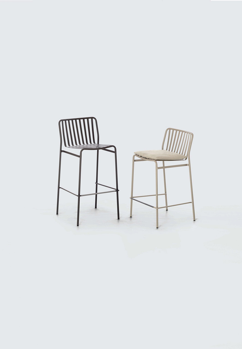 Штабелируемый барный стул со структурой из лакированной стали для использования внутри помещений.
