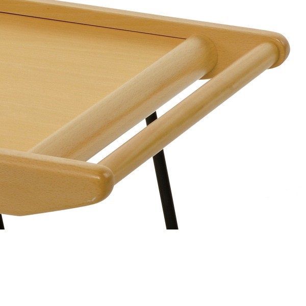 имеет высокие бортики, две деревянные ручки для переноса столика;
