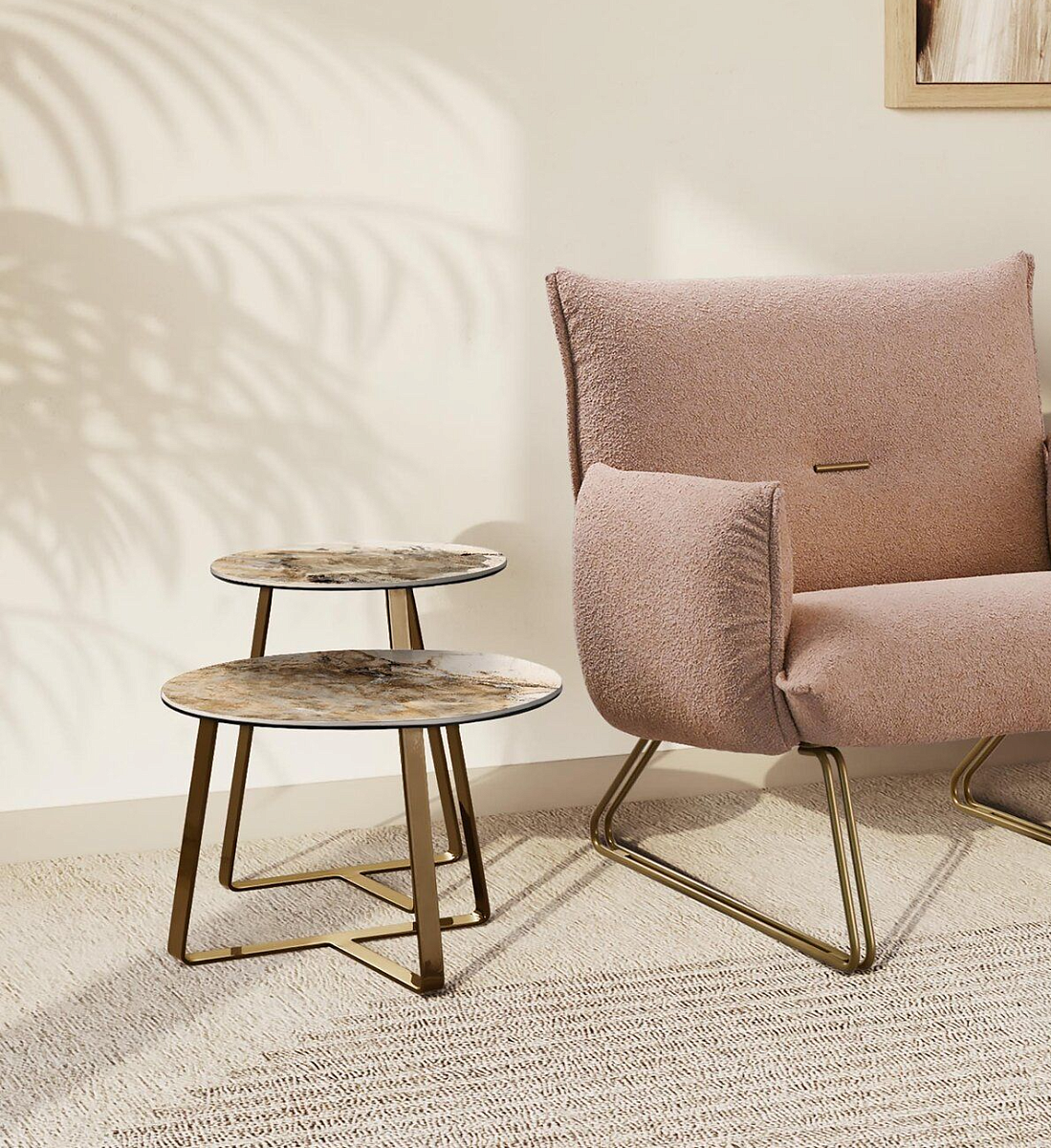 Низкие журнальные столики серии Moon отличаются минималистичной и функциональной элегантностью. Они могут стать частью многоуровневой композиции гостиной, украсив собой уголок для чтения или входную зону. Мы предлагаем широкий выбор персонализированных решений столешниц из керамики и мрамора с металлической отделкой основания.